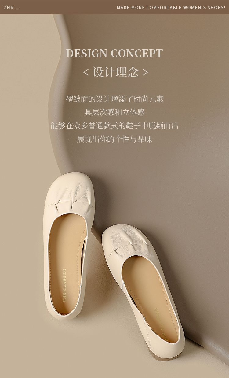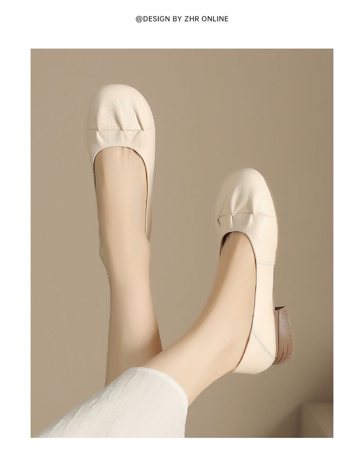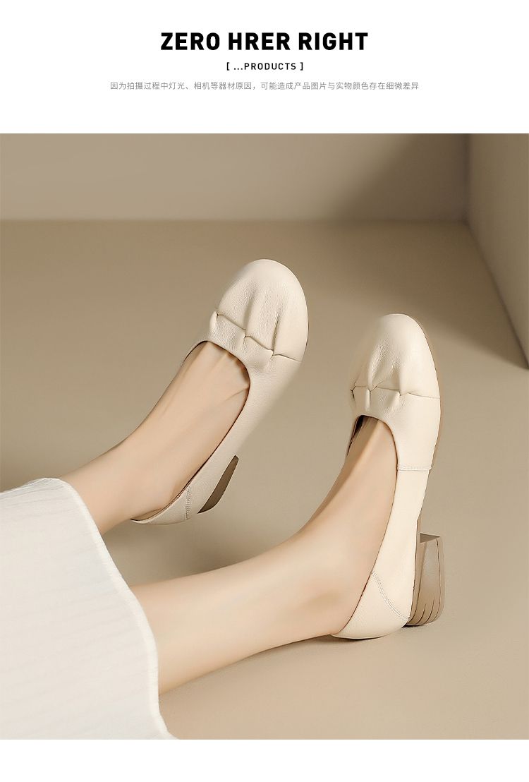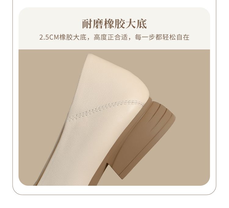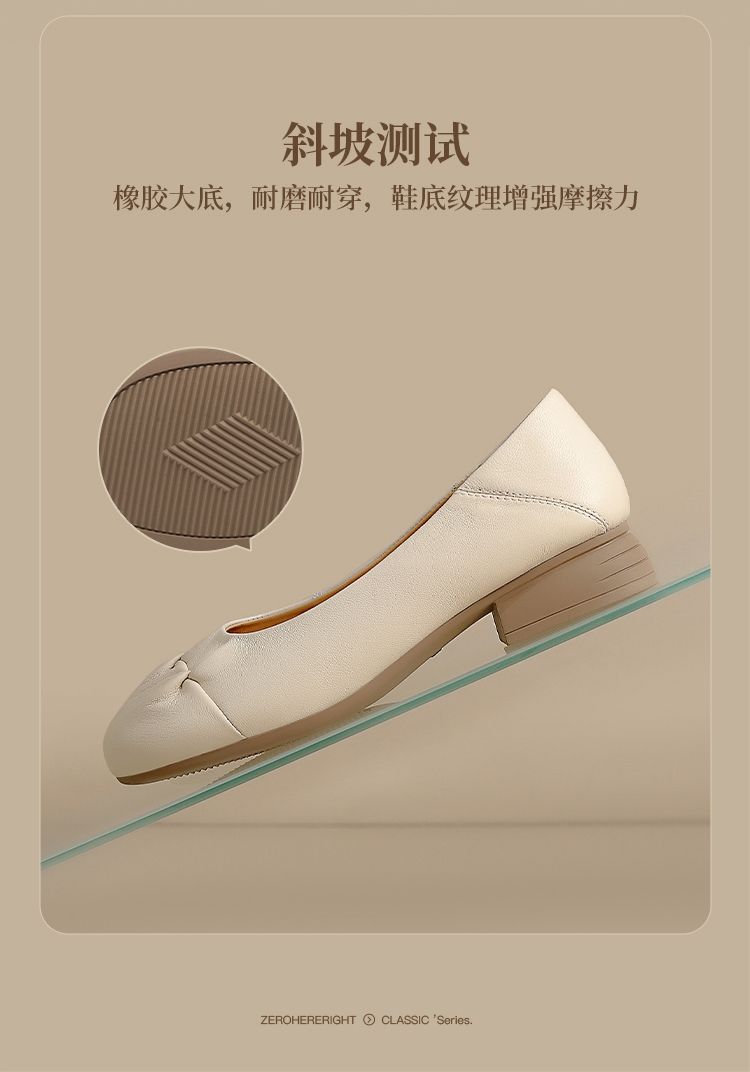 ZHR则则羊皮浅口气质单鞋真皮女2026新款百搭粗跟一脚蹬通勤单鞋