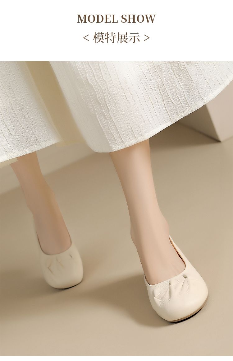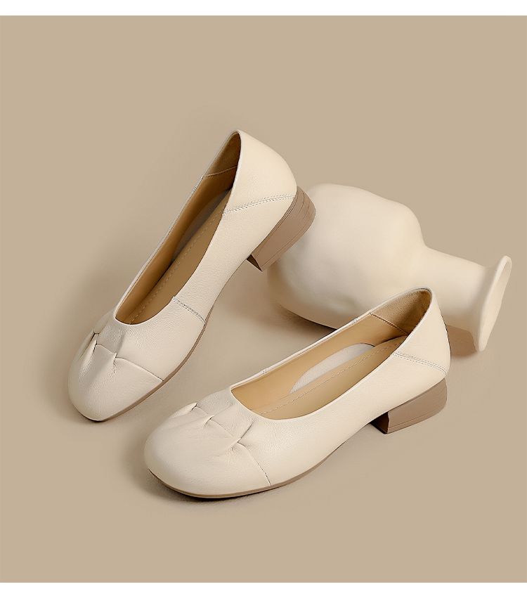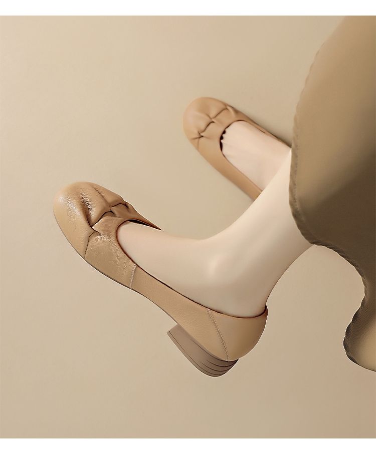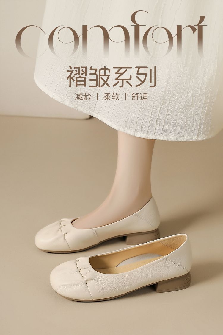 ZHR则则羊皮浅口气质单鞋真皮女2026新款百搭粗跟一脚蹬通勤单鞋