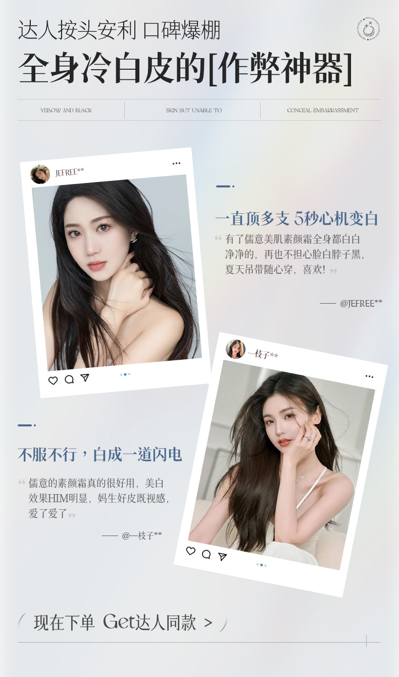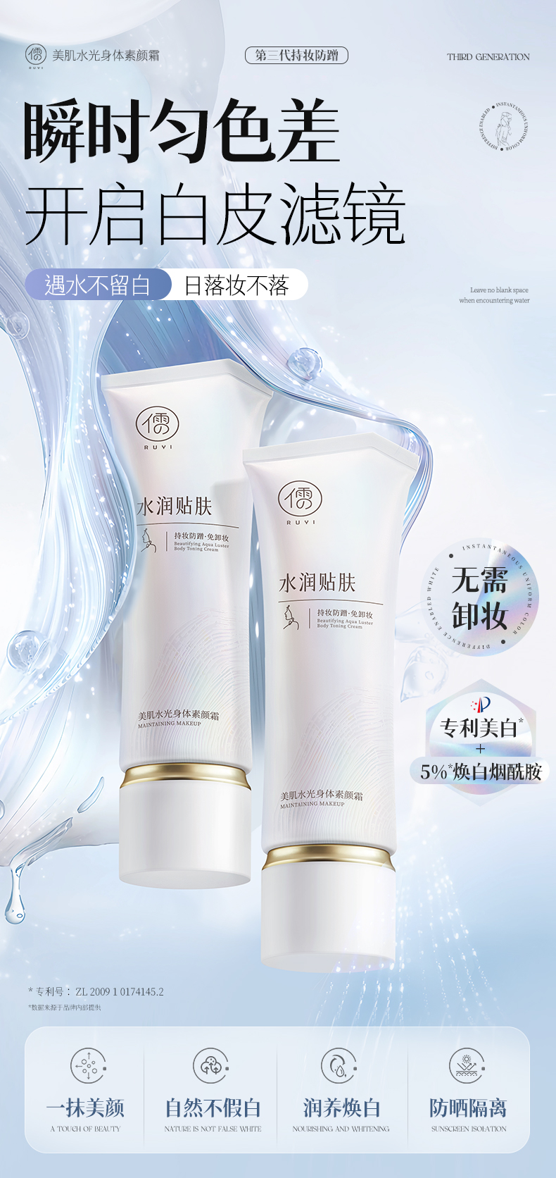 儒意美肌水光身体素颜霜150g懒人身体素颜霜全身美白脸部脖子裸妆隔离遮瑕三合一|儒意官方商城
