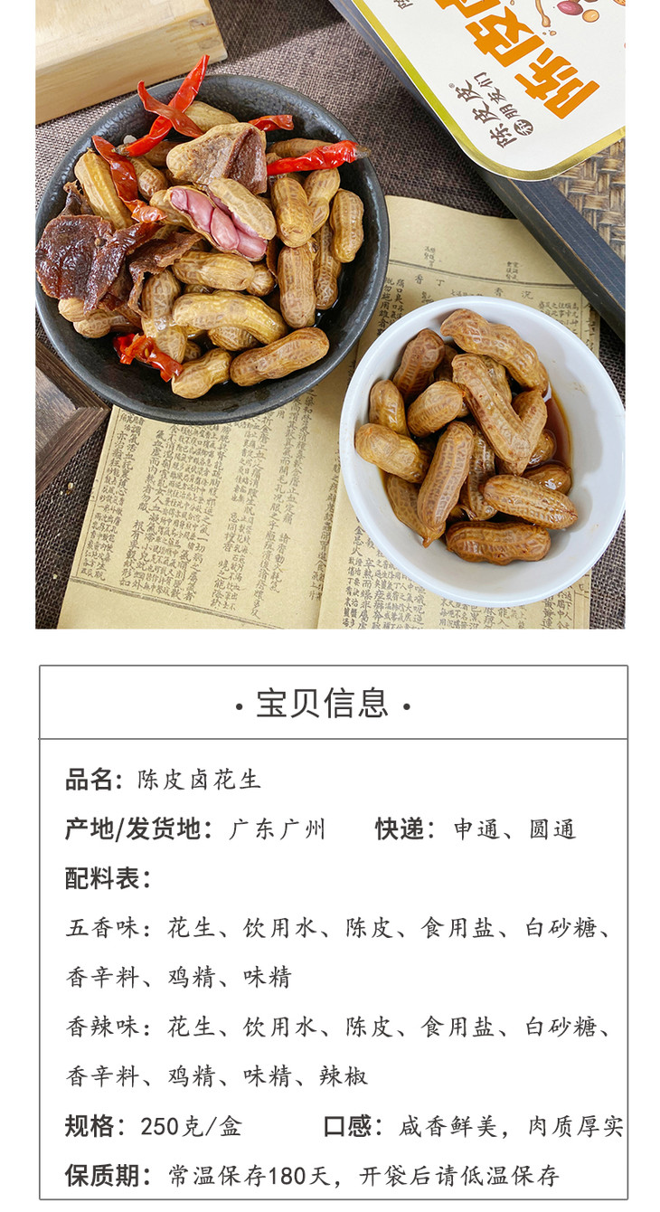 新会陈皮,搭配四粒红花生,纯植物香料,无添加,健康卤制,卤汤只用一次,吃的放心和健康!