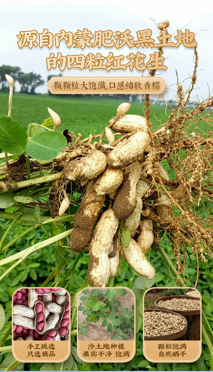 花生则是被称为“长寿果”的四粒红花生,个头大、饱满,果仁鲜红,肉质醇厚,口感厚实,回味绵长。