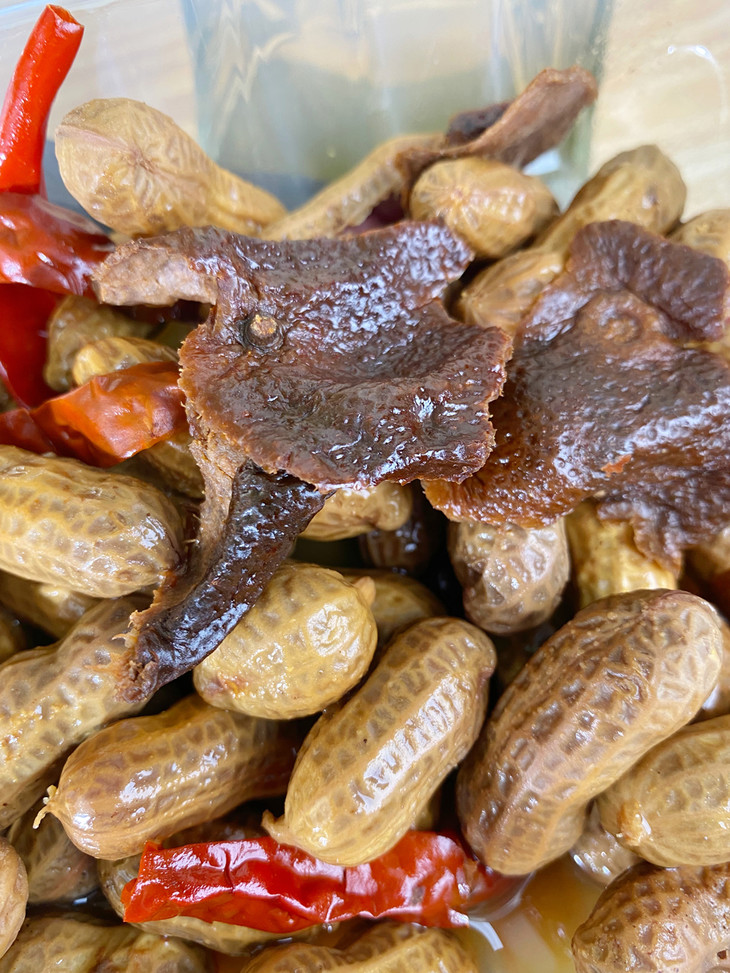 带壳花生在特制卤汁里翻滚,入味至极,咬一口,香浓四溢,太满足啦!