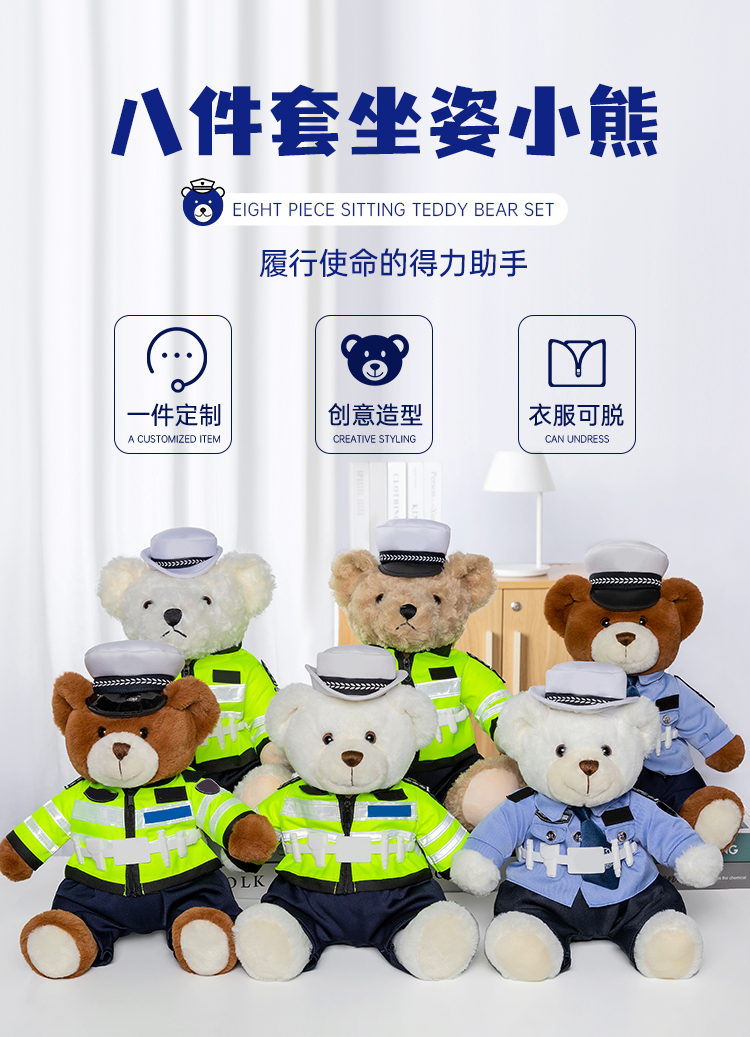 【实付满199送钥匙扣】【八件套骑行坐姿小熊】毛绒公仔玩具儿童毛绒小熊玩偶布娃娃送礼礼品礼物
