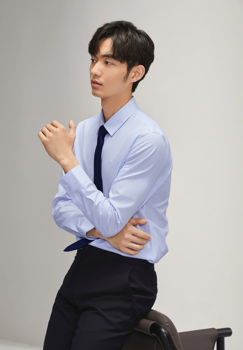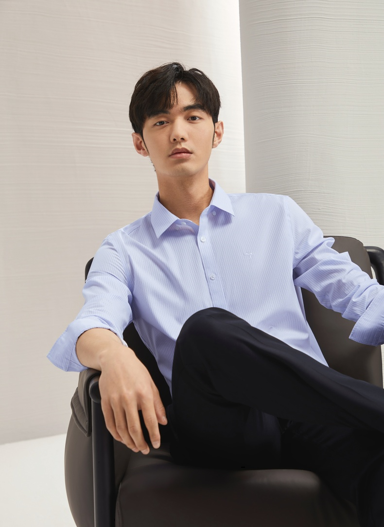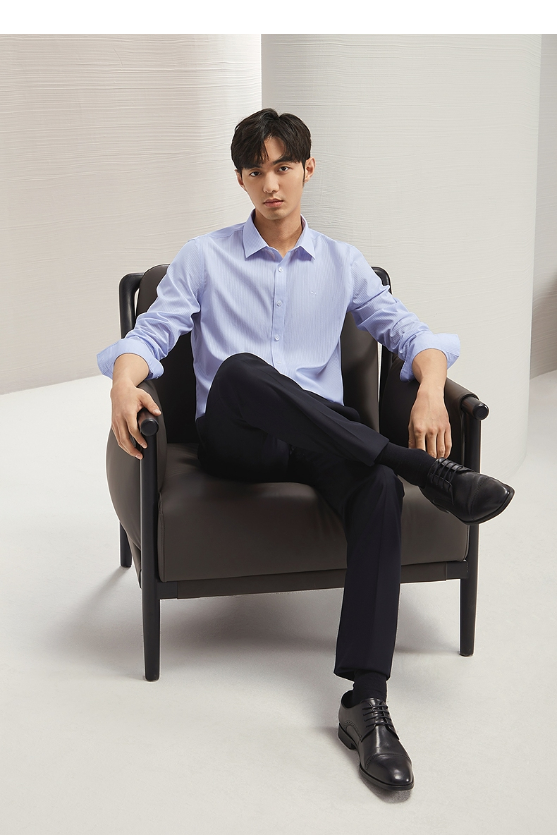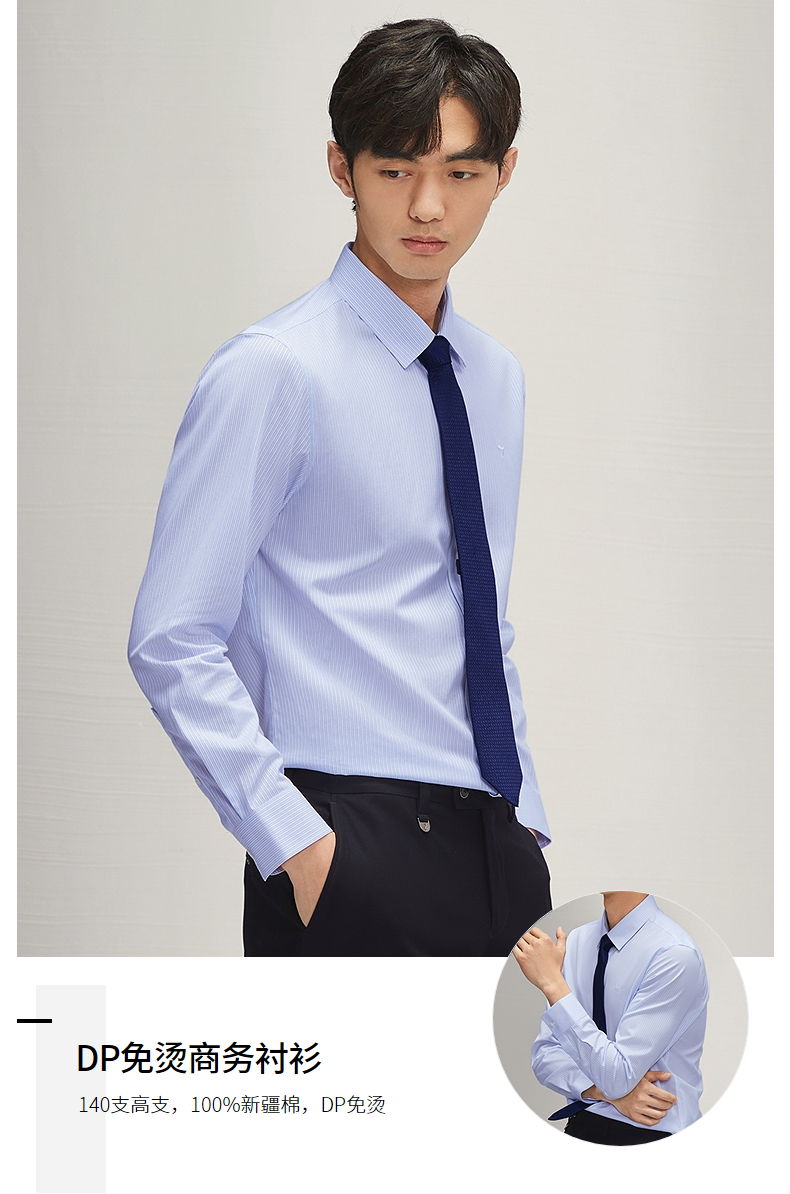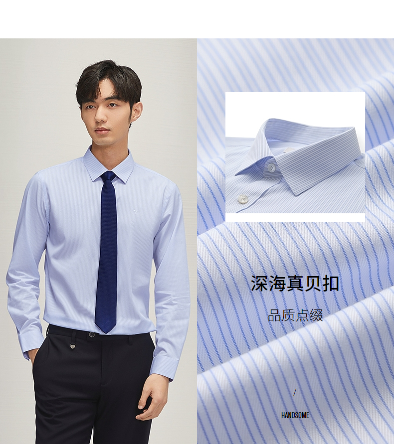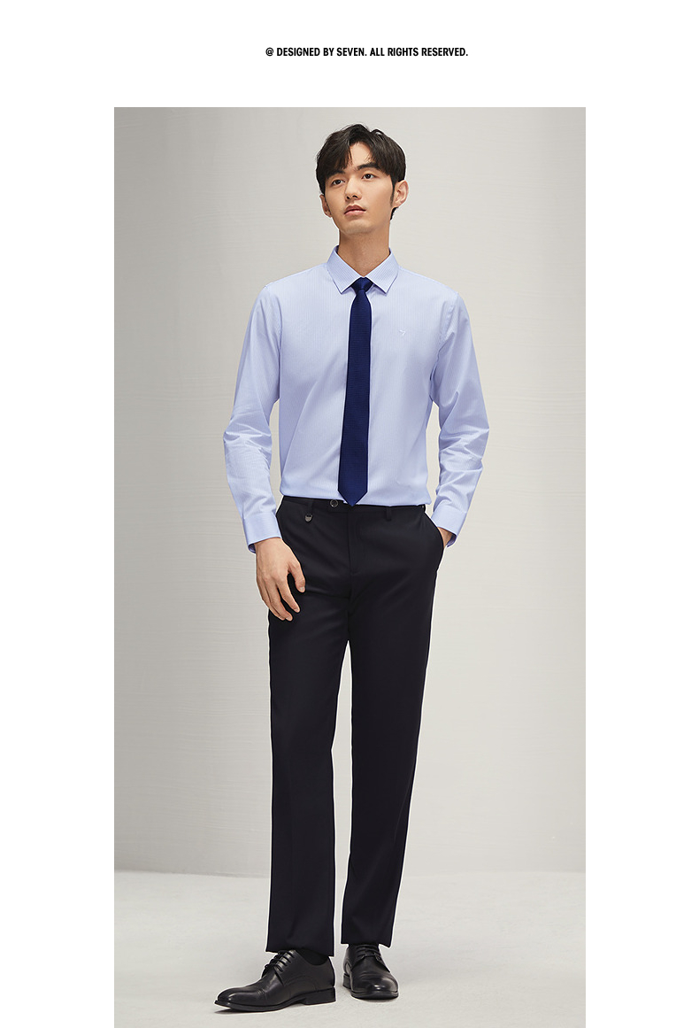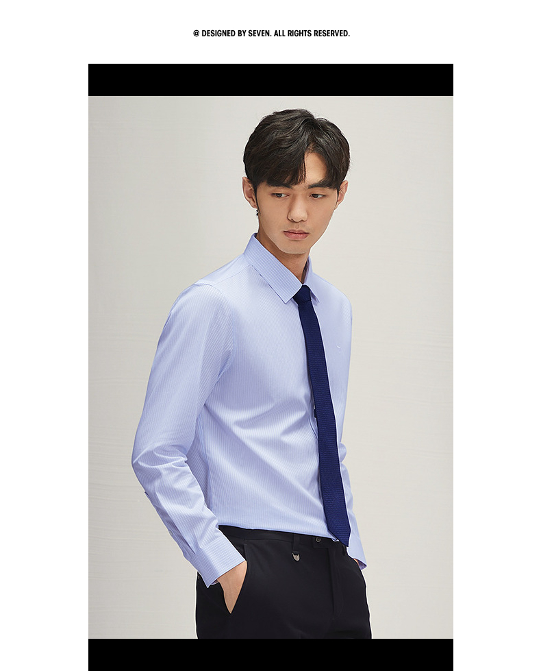 【3.5级DP免烫】柒牌纯棉长袖衬衫男士春秋新款时尚休闲条纹衬衣127A70700