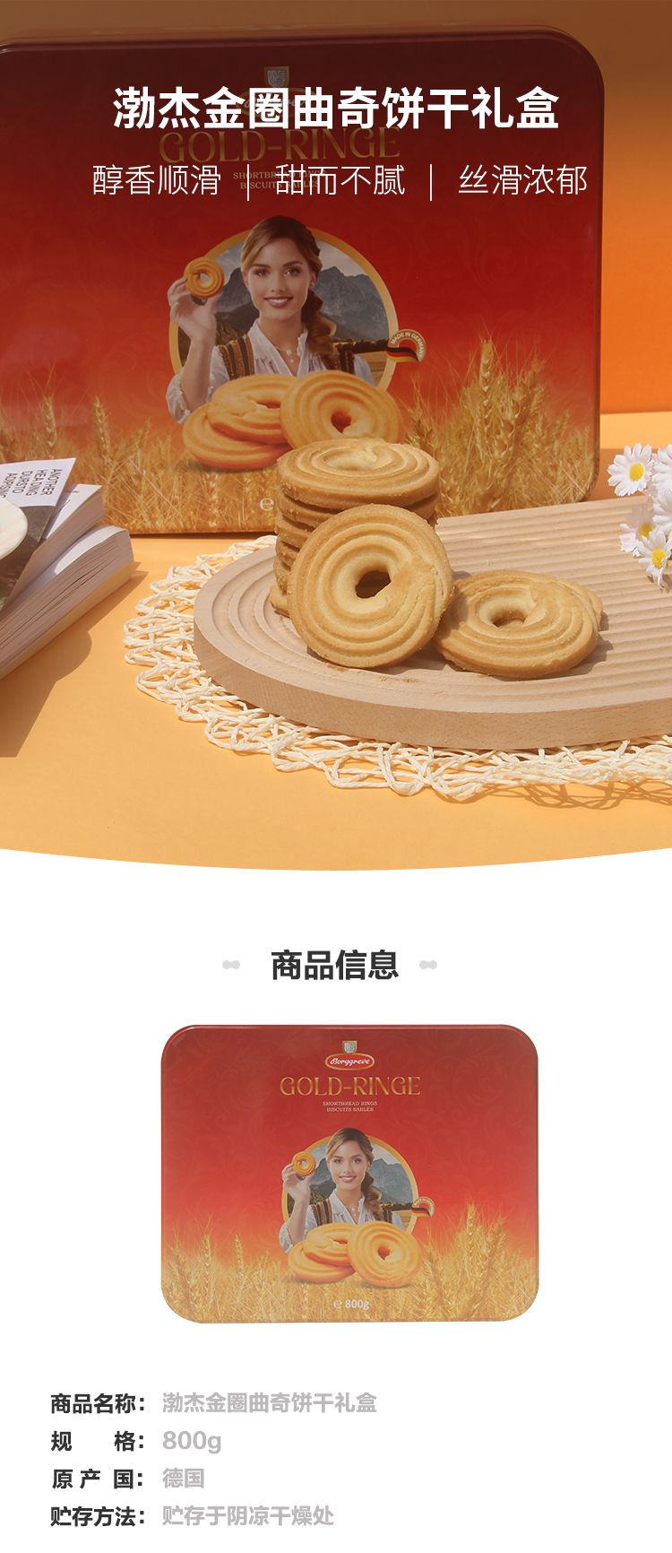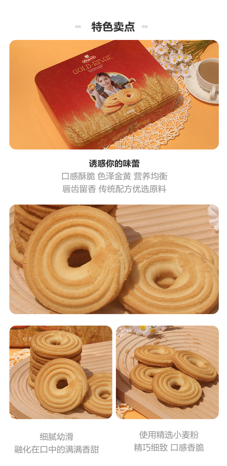 德国渤杰金圈曲奇饼干800g/051816(新老包装随机发货) 口感酥脆色泽金黄传统配方优选原料