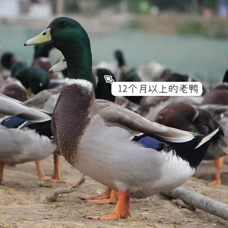 洪湖野鸭的标准是3个月是嫩鸭,12个月就是老鸭了。