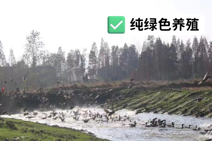 回归自然的放养方式,绿头野鸭每日悠闲在山野田间自由散步,觅食河虾、鱼鲜、贝类、田螺等。