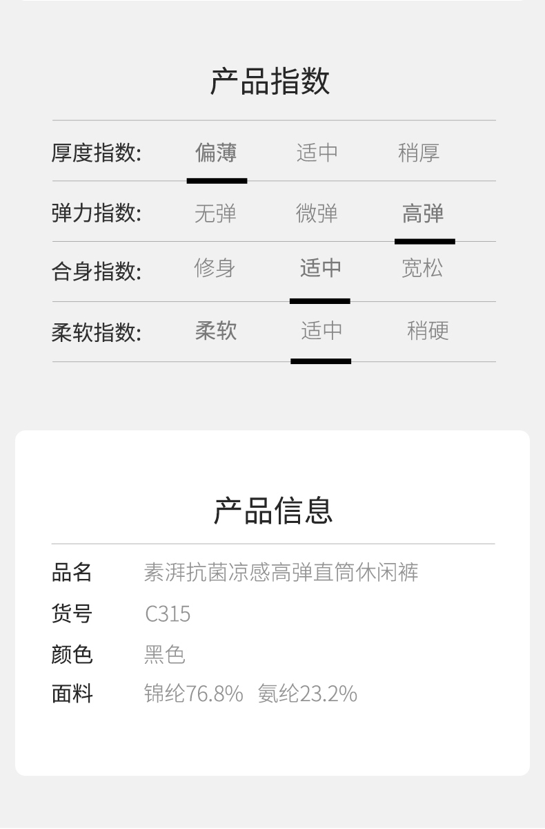 素湃抗菌透气弹力抗皱直筒休闲裤C315