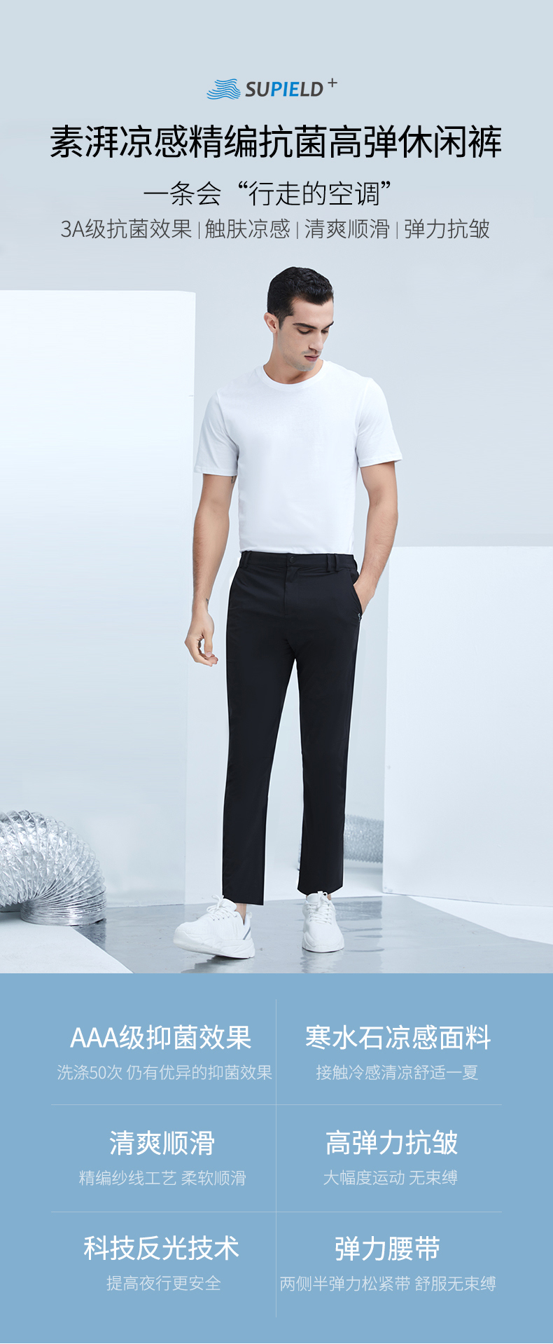Supield素湃凉感休闲裤男高弹力长裤透气商务男裤子夏季薄款