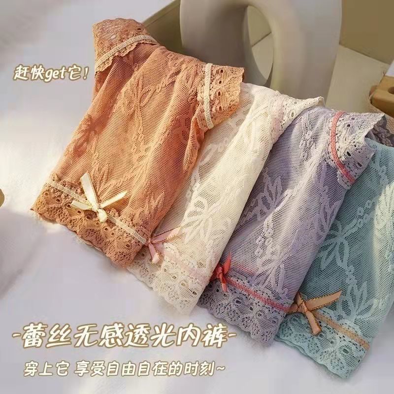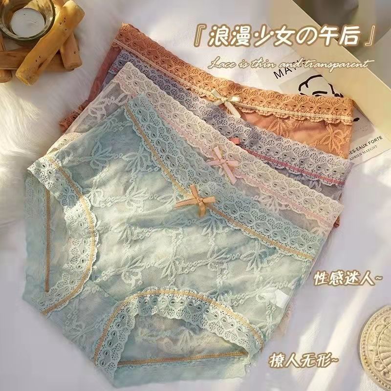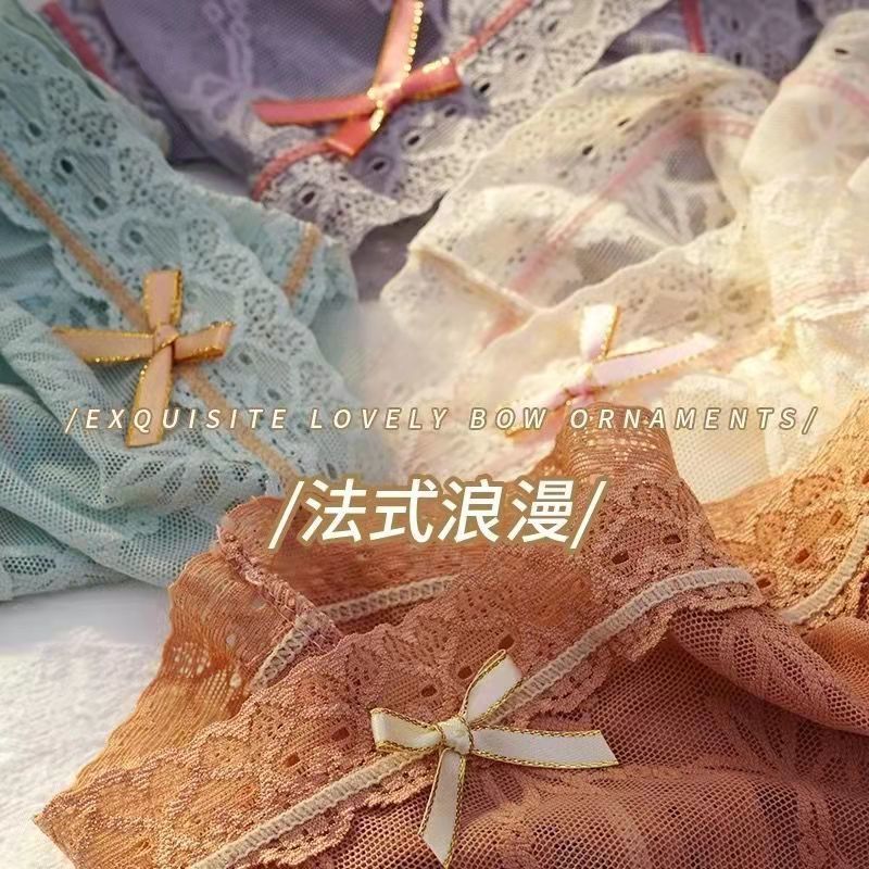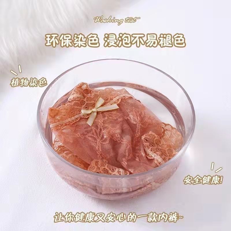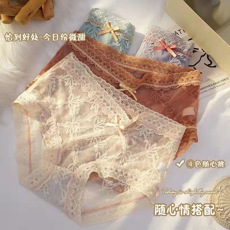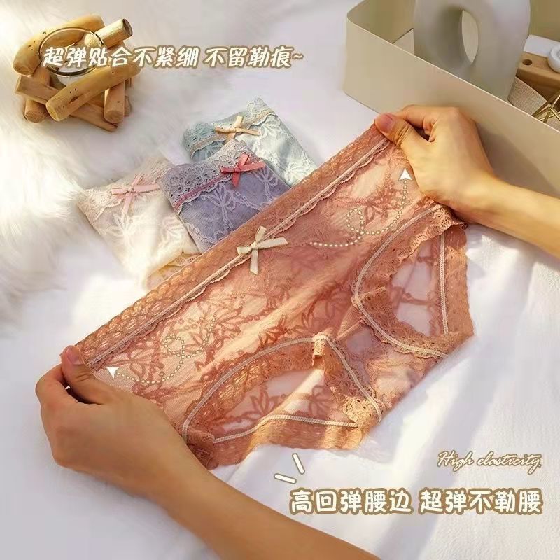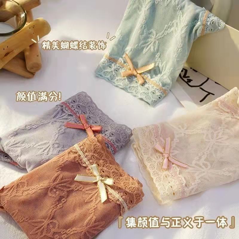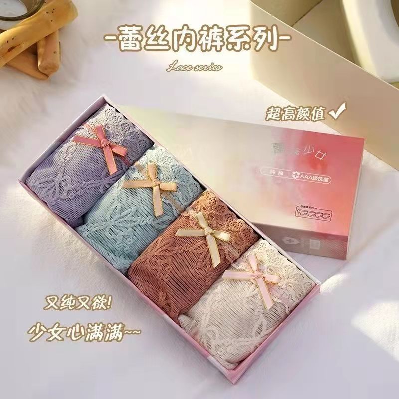 黛唯梵4条盒装性感蕾丝少女内裤中腰超薄石墨烯棉裆蝴蝶结三角裤