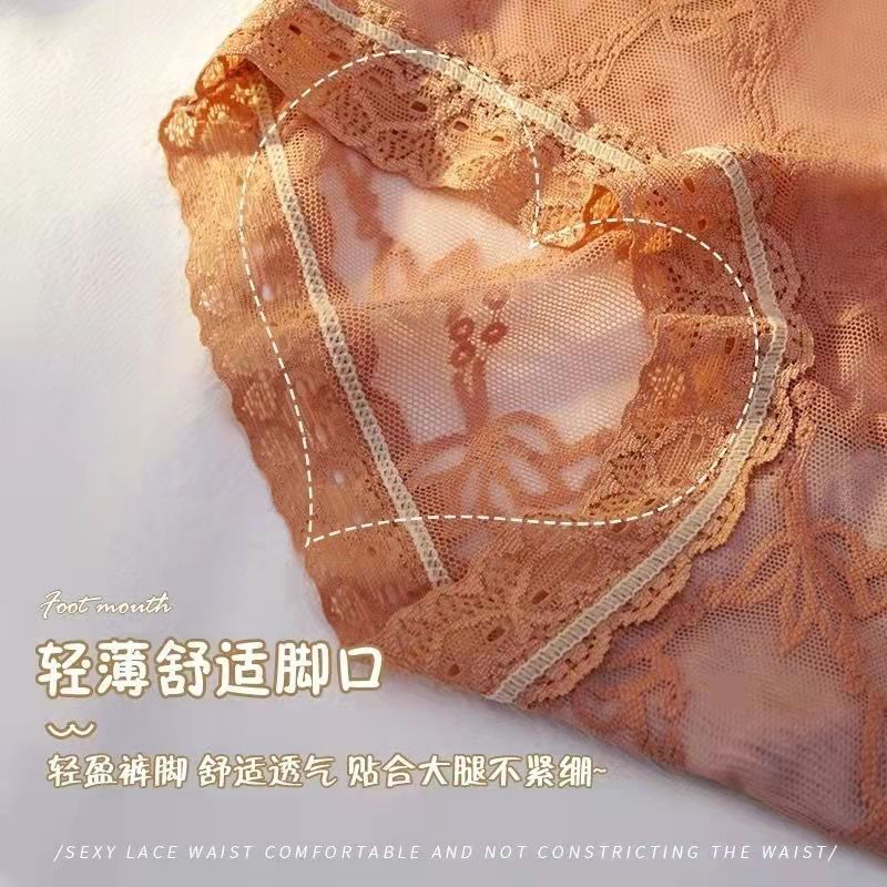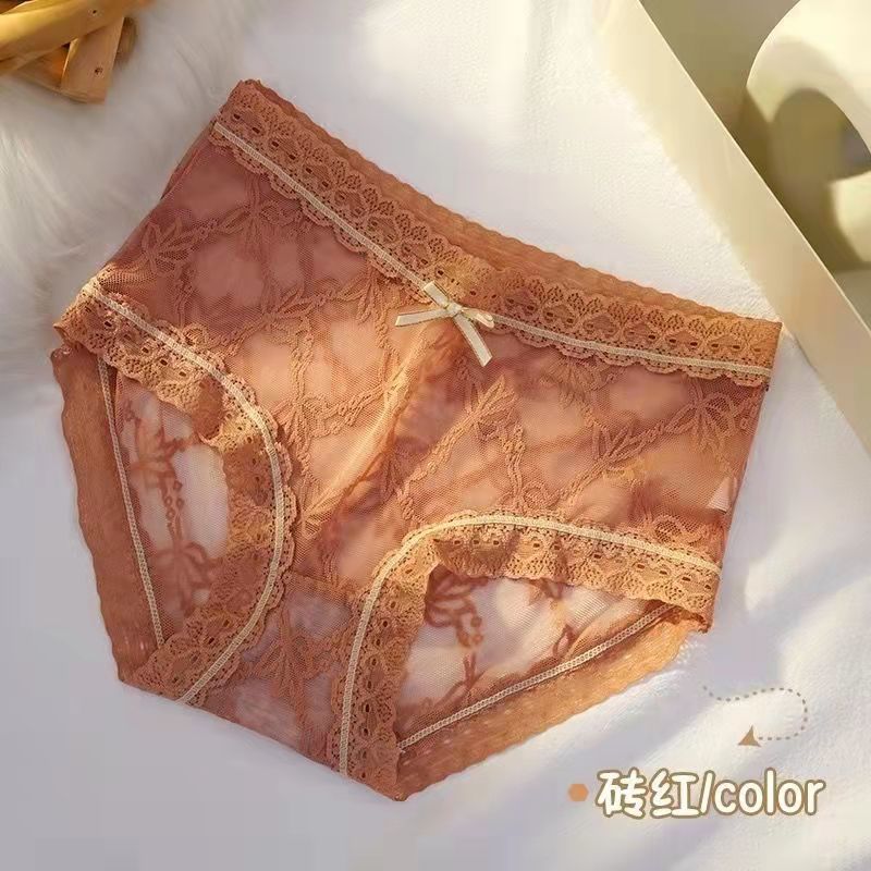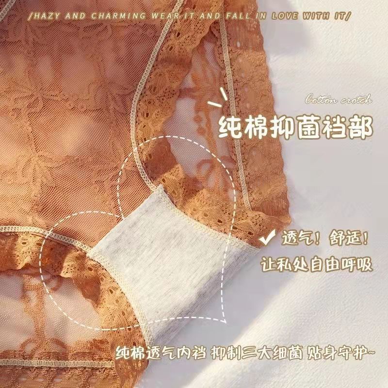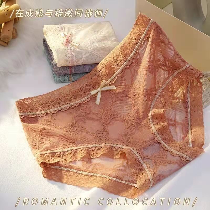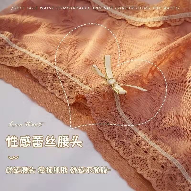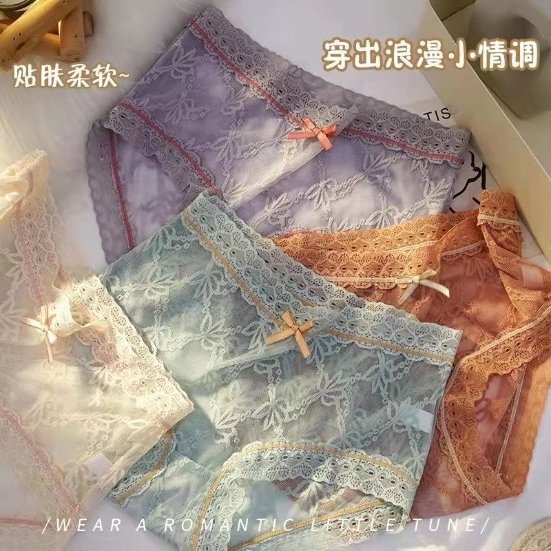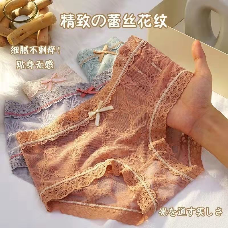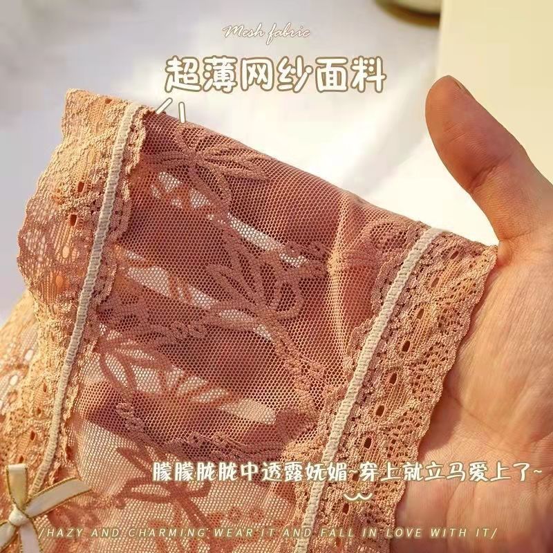 黛唯梵4条盒装性感蕾丝少女内裤中腰超薄石墨烯棉裆蝴蝶结三角裤