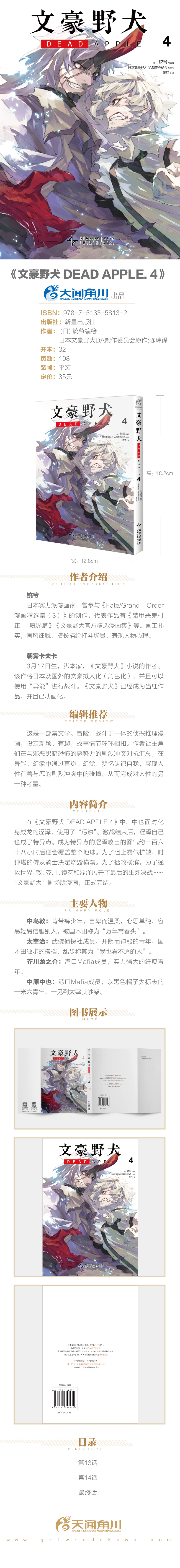 【限量豪华特典:双黑铜闪徽章一套】文豪野犬 DEAD APPLE.4漫画最终卷(随书赠品:双黑光栅卡1张)