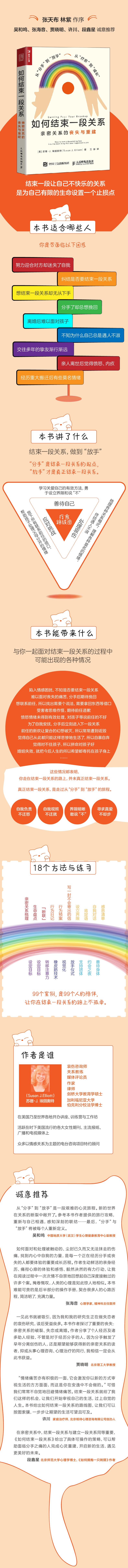 《如何结束一段关系》陪你走过这段伤心之旅,陪你面对其间的愤怒、内疚、焦虑、迷茫、矛盾、执着等情绪,让你不再因恐惧而否认、逃避或用不健康的方式应对,帮助你放下内心的纠结并以此为契机,盘点过往生命,梳理过往关系,学会善待自己,重塑自我形象,勇敢说“不”,活出不讨好的人生。当你运用书中提供的工具,建立起内部和外部支持系统,逐步处理悲伤后,你就可以一步步走出受困的关系模式,拿回人生的主导权。本书适合分手、离婚、亲人离世及具有人际关系困扰的人阅读。