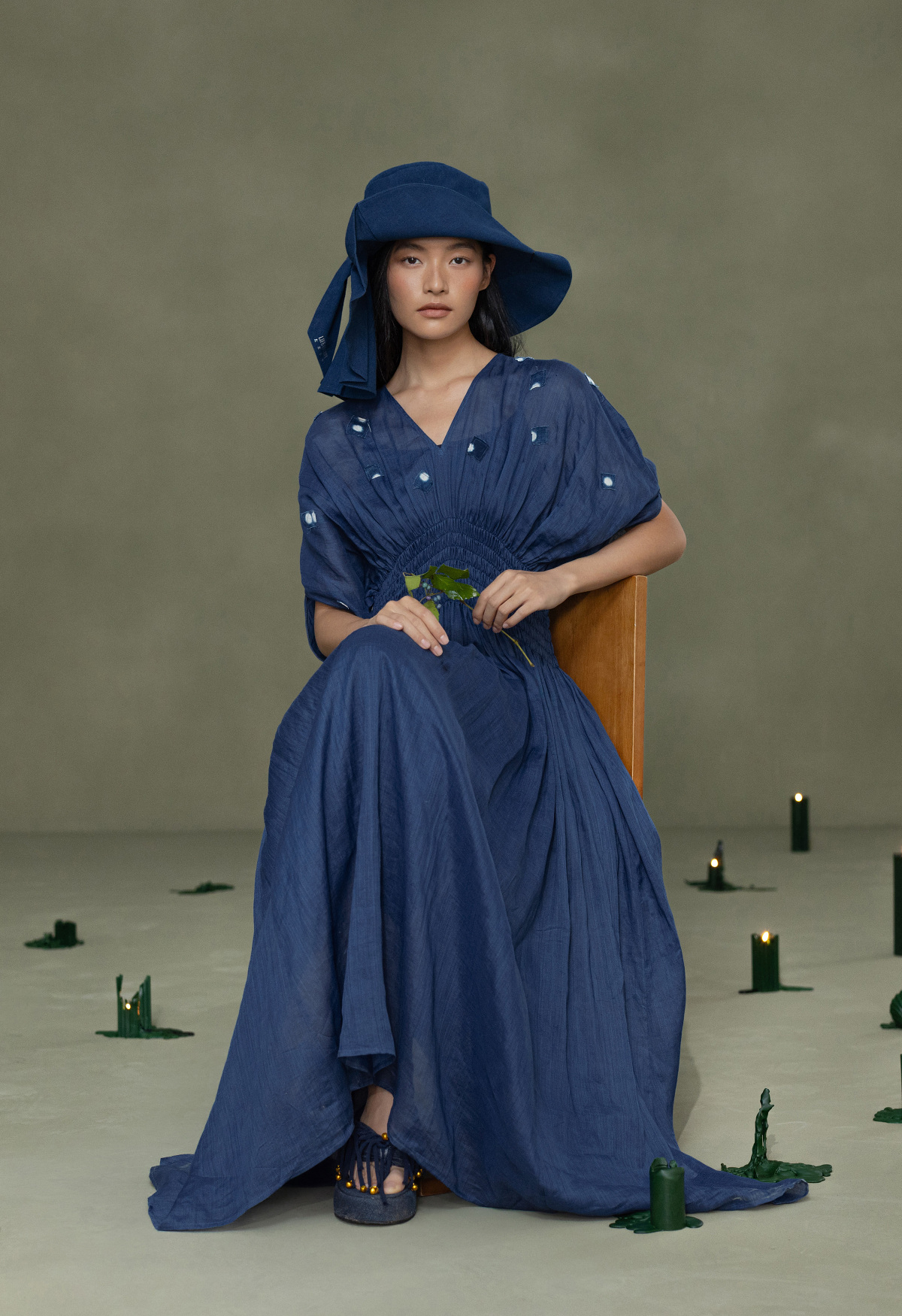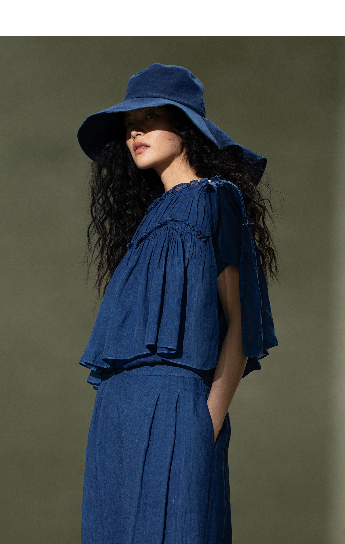 【林栖设计小店】植物染色|手工植物蓝纯棉蝴蝶结复古百搭2026春新款帽子2961133