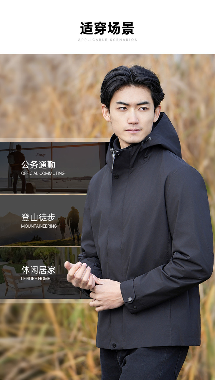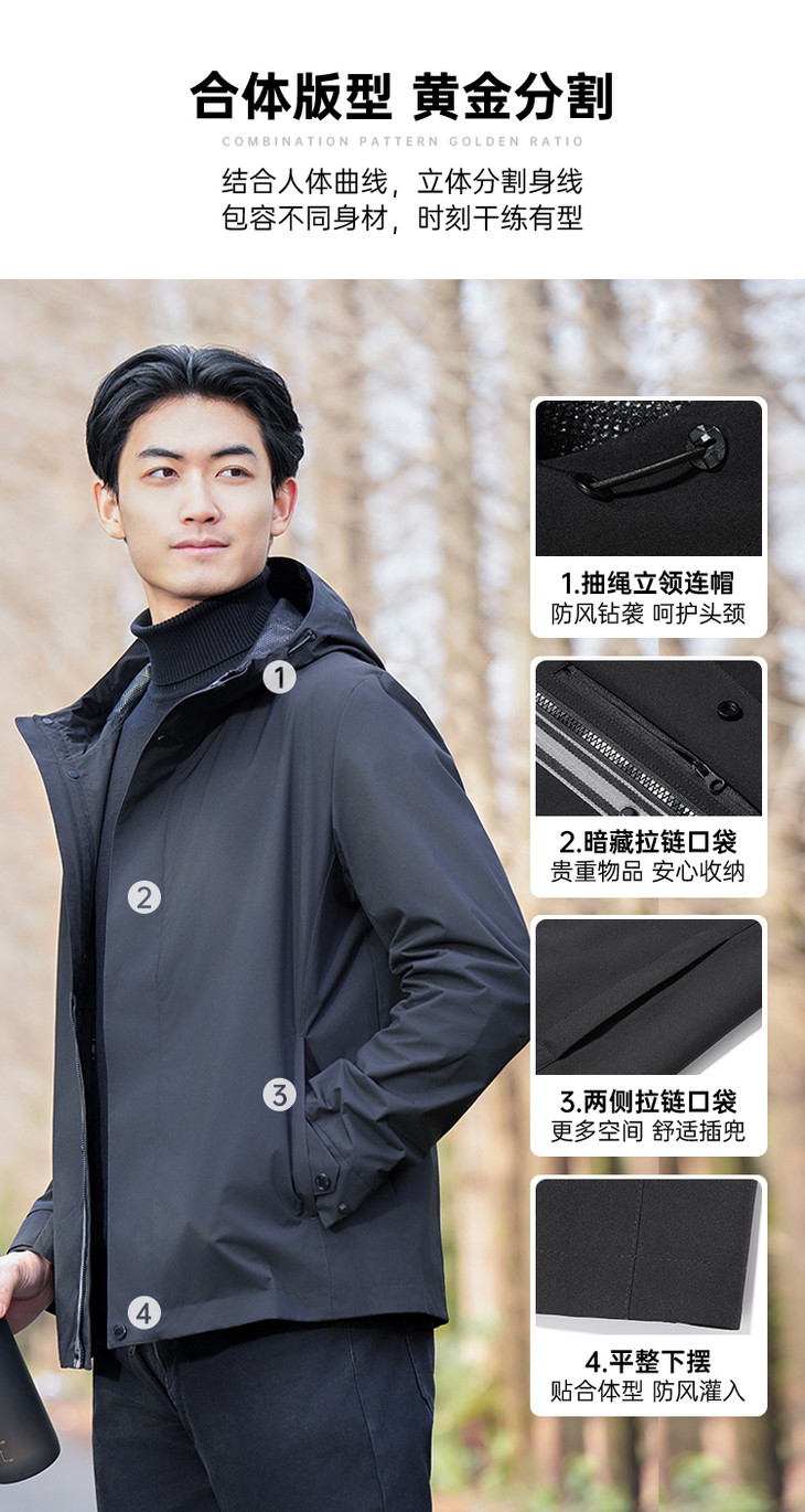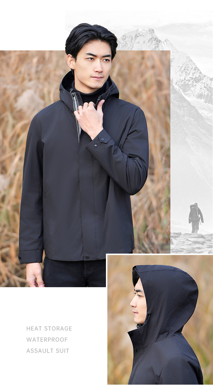 【蓄热防水休闲夹克/清仓】户外防泼水夹克 透气连帽宽松外套