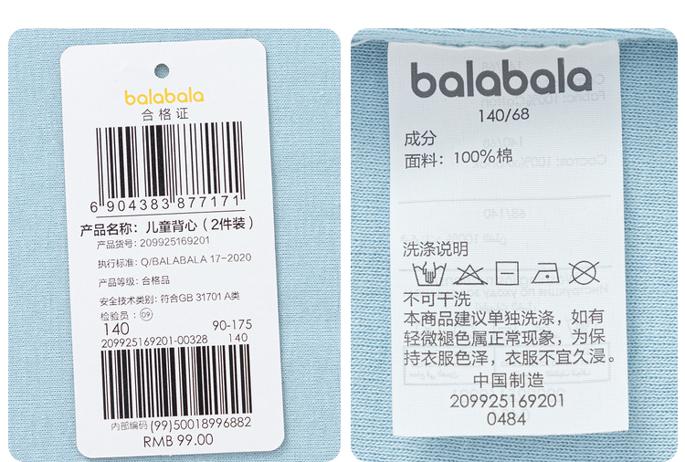 巴拉巴拉儿童背心两件装春秋装2025新款男童上衣女童打底衫中小童
