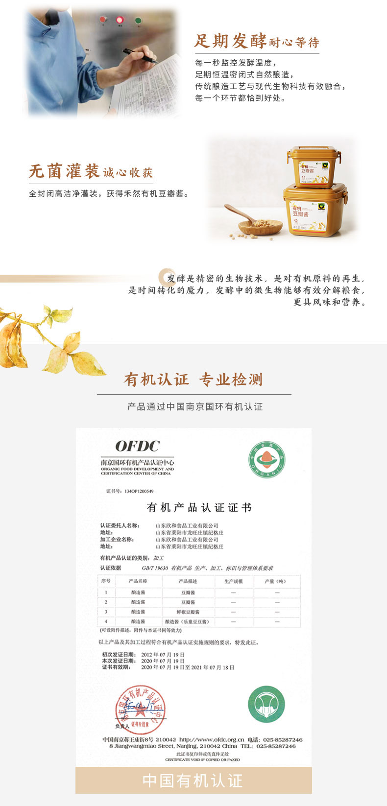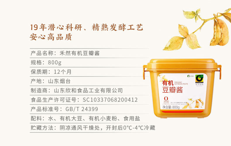 禾然有机豆瓣酱 有机原酿酱 黄豆酱