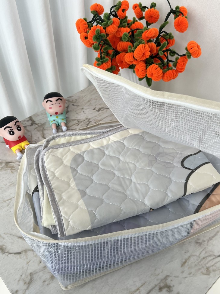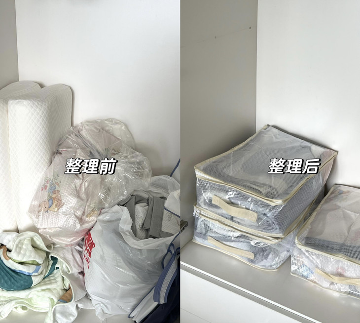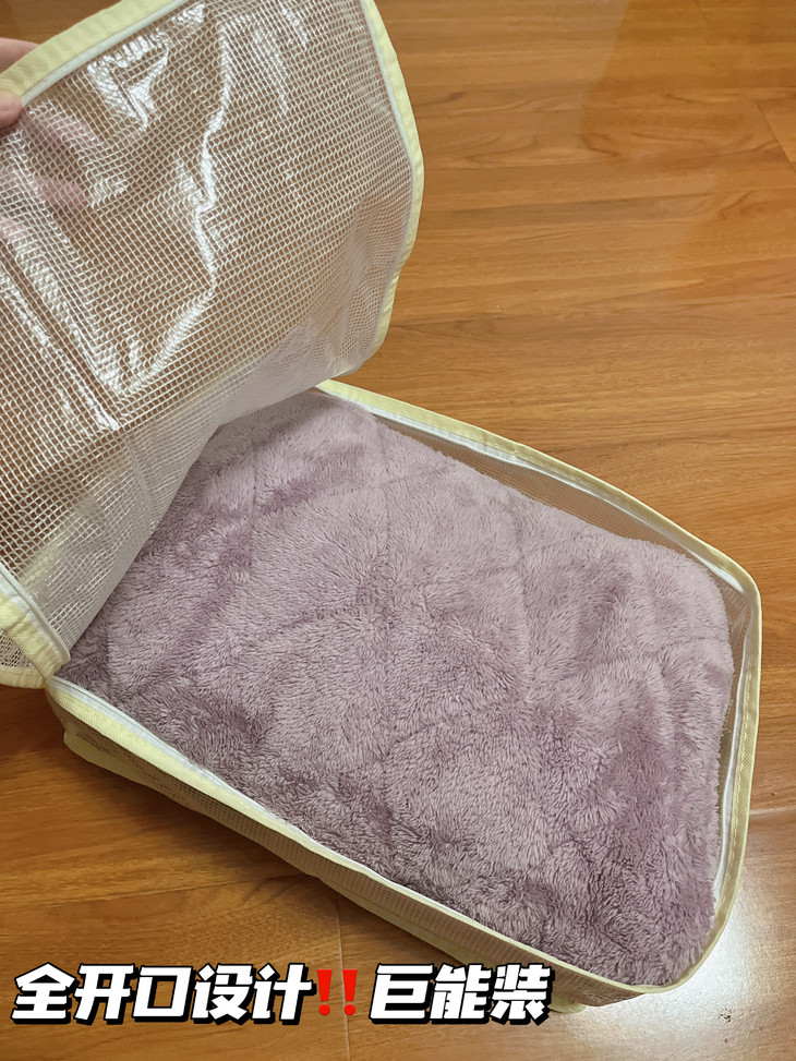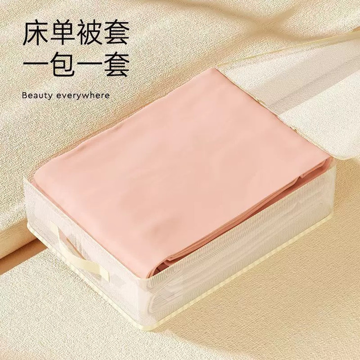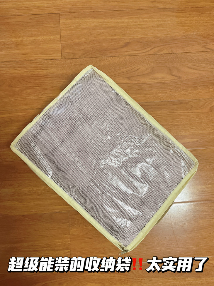 谁还在把四件套堆成“小山”啊🙈 试试这神仙收纳袋!透明网纱能看清内容,找套件再也不抓瞎~ 防水防潮材质,南方梅雨季也不怕套件受潮🌧️ 侧边加固手提,提着重物也不变形 装两套四件套轻轻松松,衣柜整洁度直接拉满,收纳界“六边形战士”实锤💪