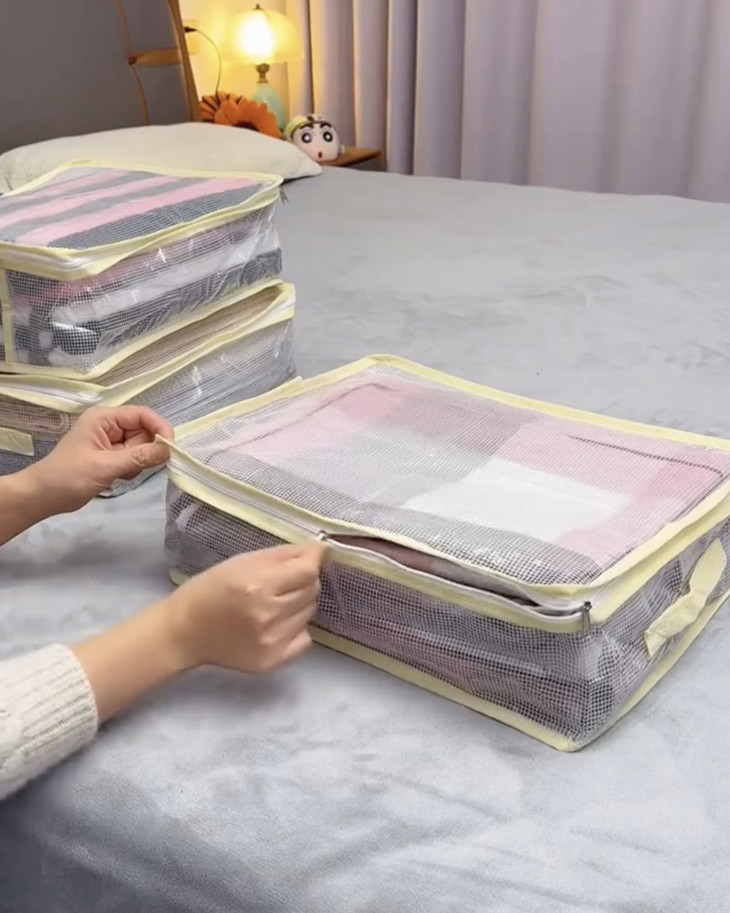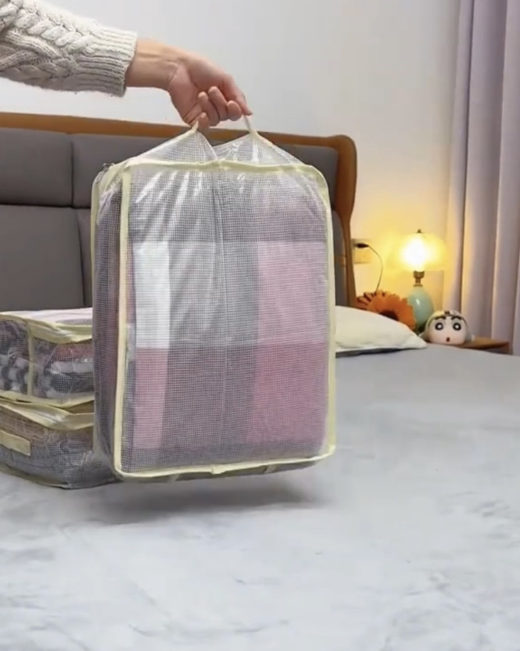 收纳界“显眼包”来了💥 不是我吹 这收纳袋用过就离不开! 透明清晰可视,找套件超方便;网纱透气+密封锁边,防尘又防潮~ 手提设计贴心到哭,装两套四件套毫无压力,衣柜整齐得像“展厅”,收纳焦虑者速入,从此和凌乱说拜拜👋