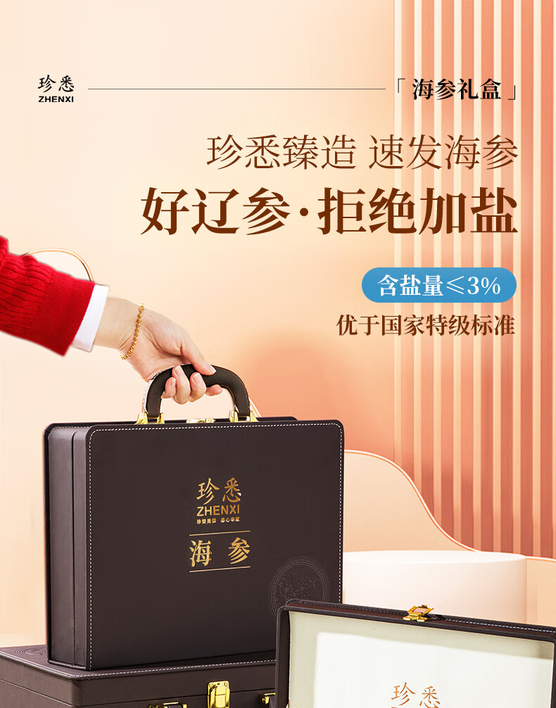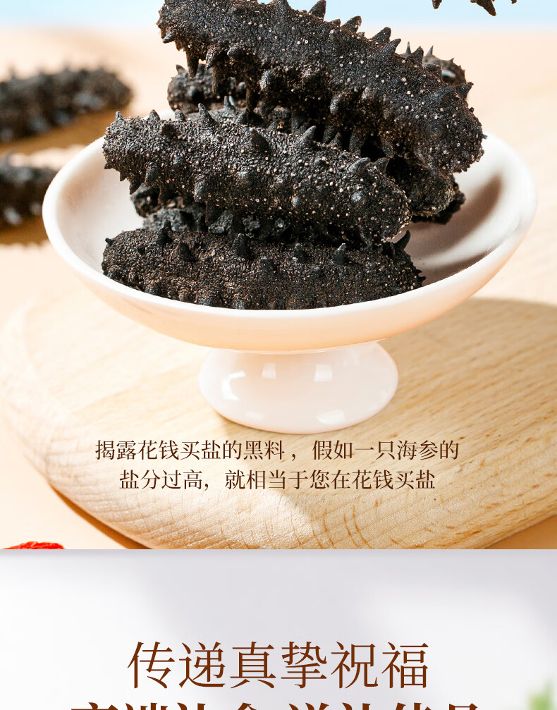 【礼盒】珍悉 速发干海参含盐度不高于3%辽参(10支)35g/(85支左右)250g 珍馐美味 悉心奉献