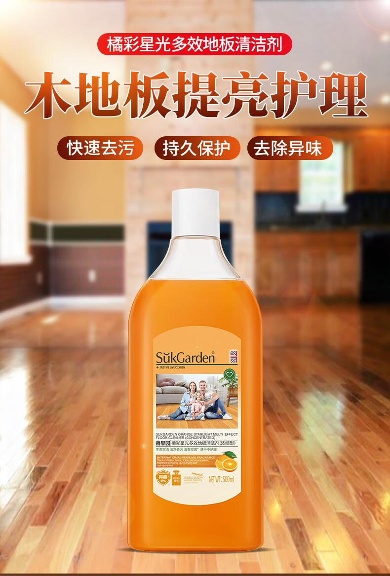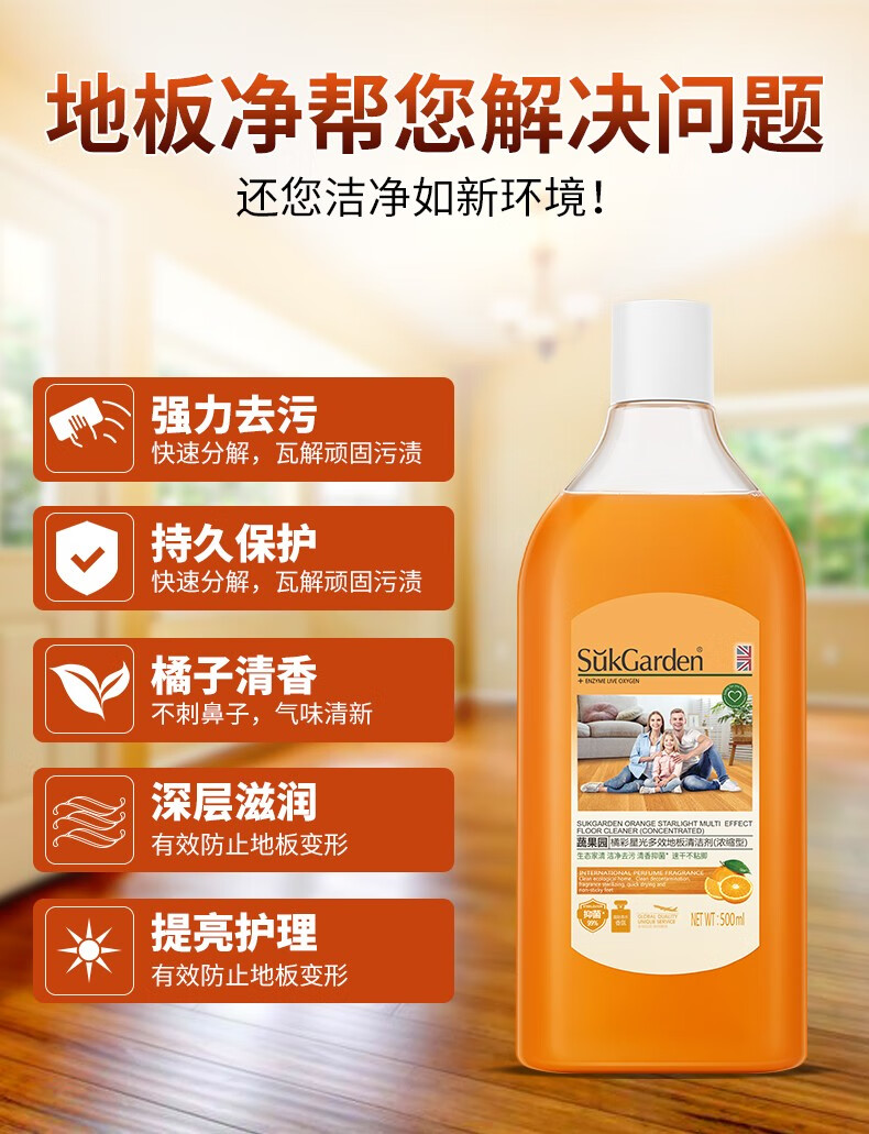 蔬果园橘采星光地板清洁剂500g*3瓶