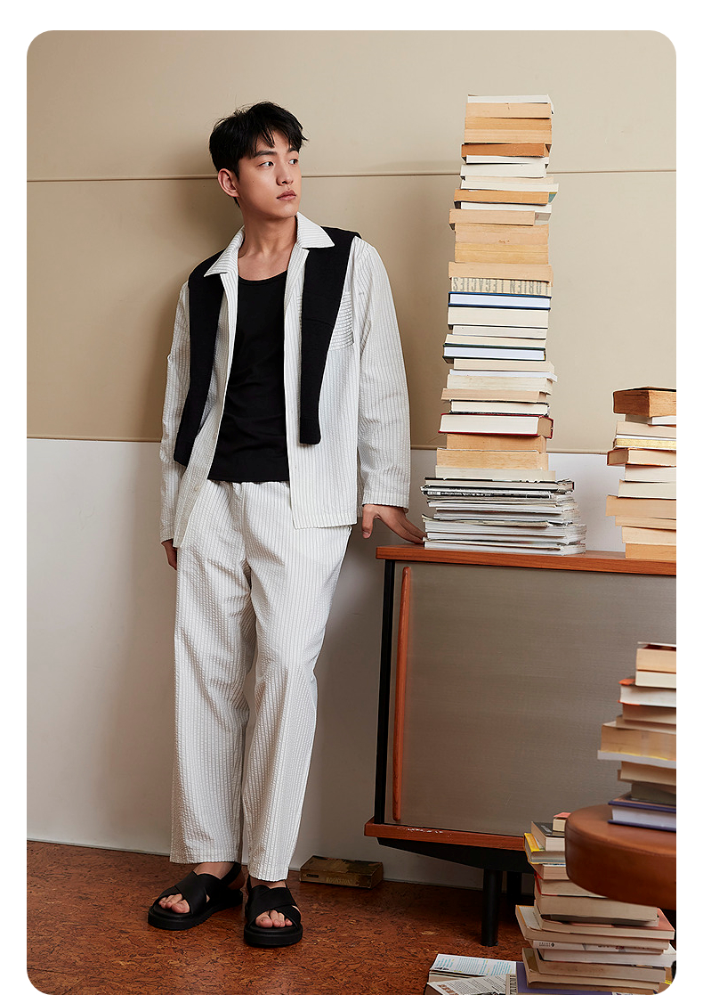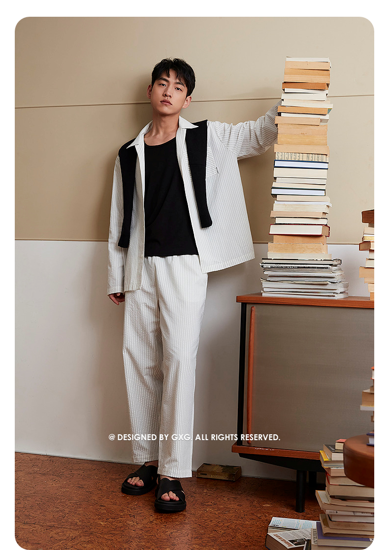 GXG男士家居服 肌理感衬衫式条纹睡衣男居家套装 25年春季新品