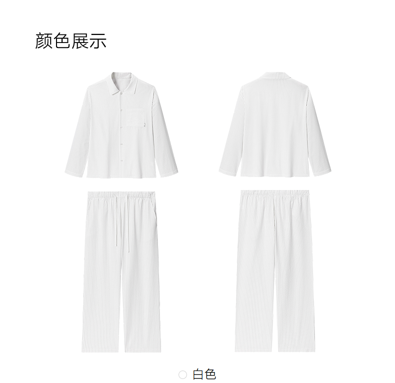 GXG男士家居服 肌理感褶皱纹理长袖睡衣男休闲系带式开衫睡衣套装