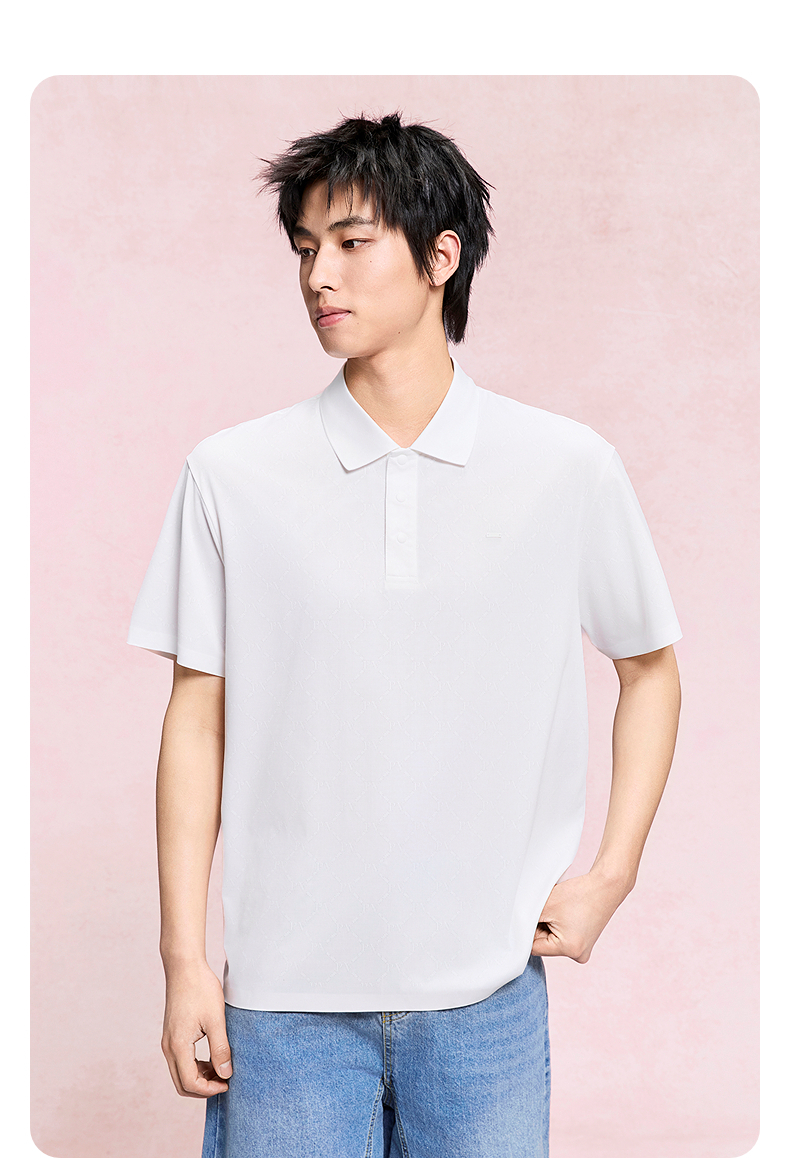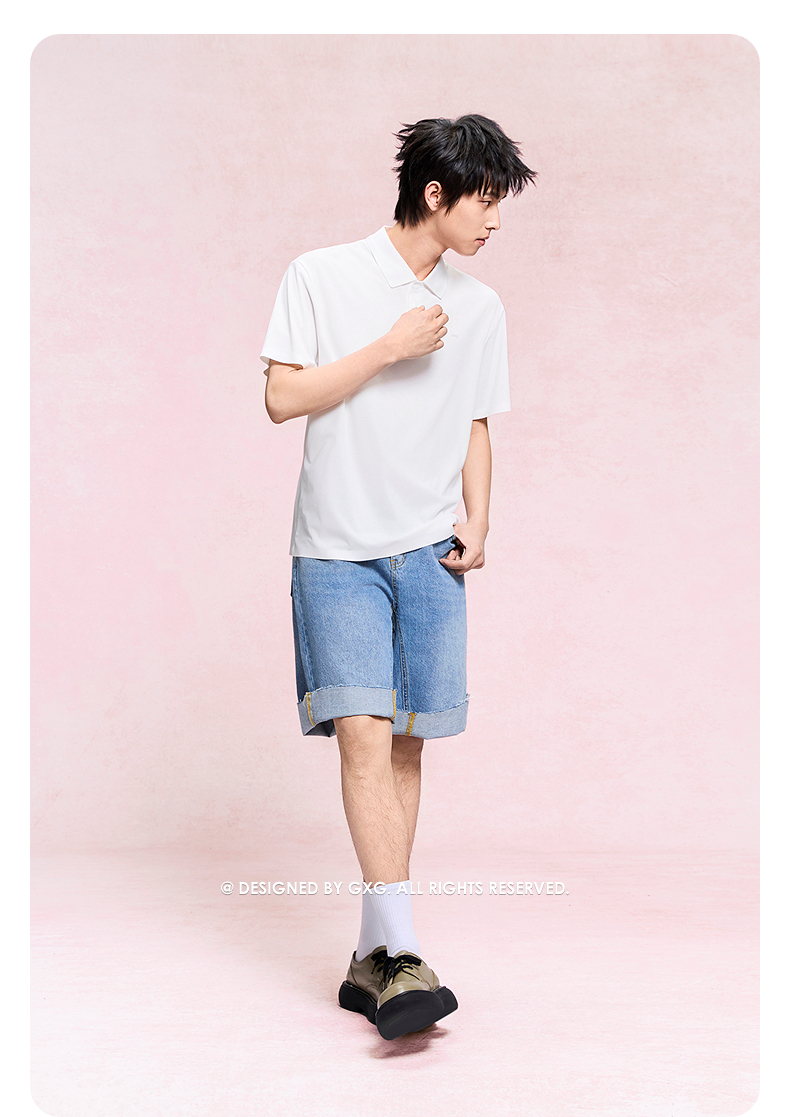 GXG男装 本白色polo衫男士上衣简约翻领短袖通勤商务POLO衫 夏季热卖
