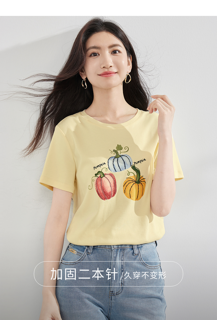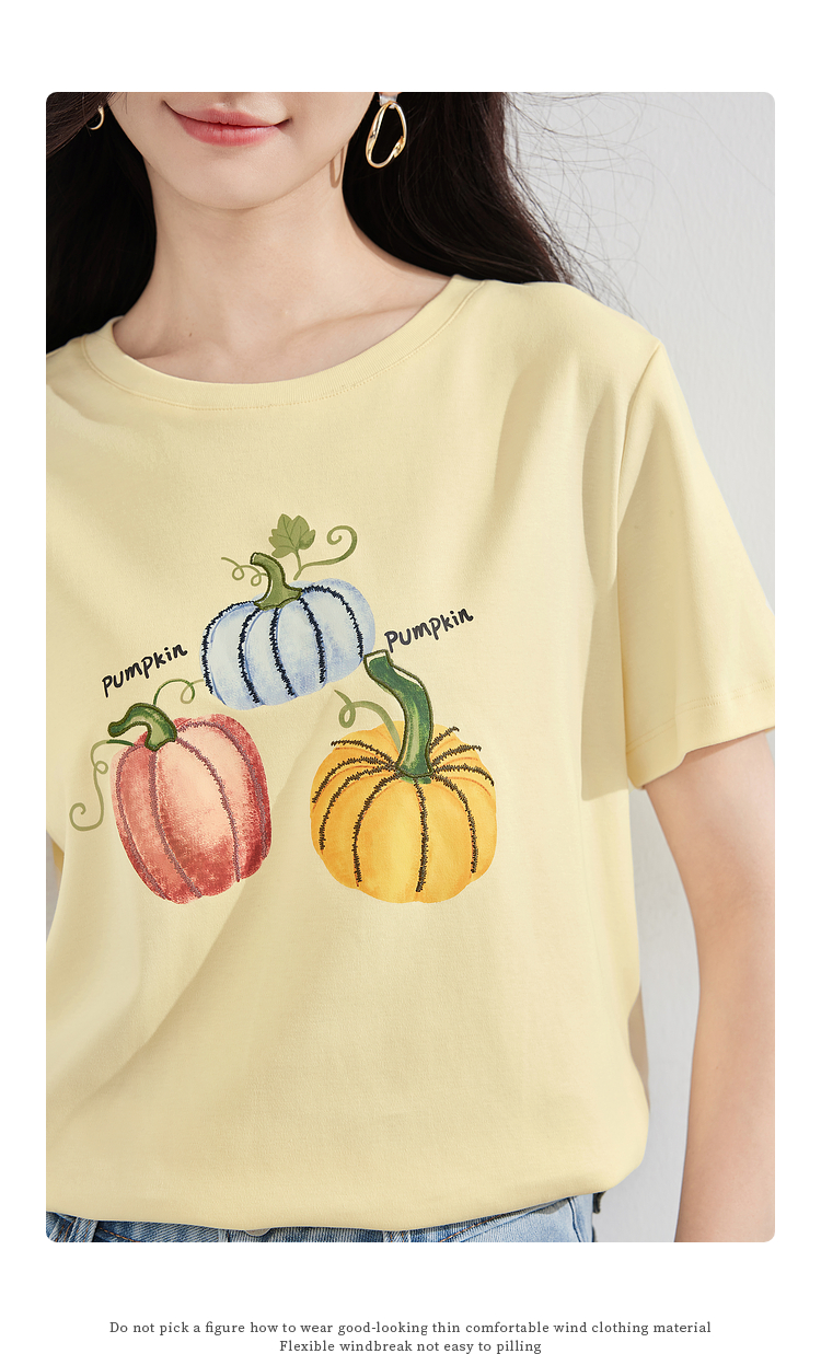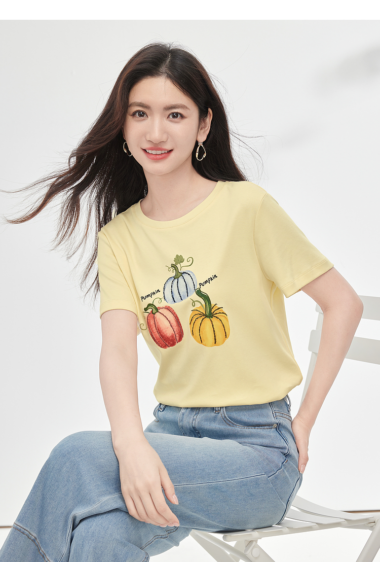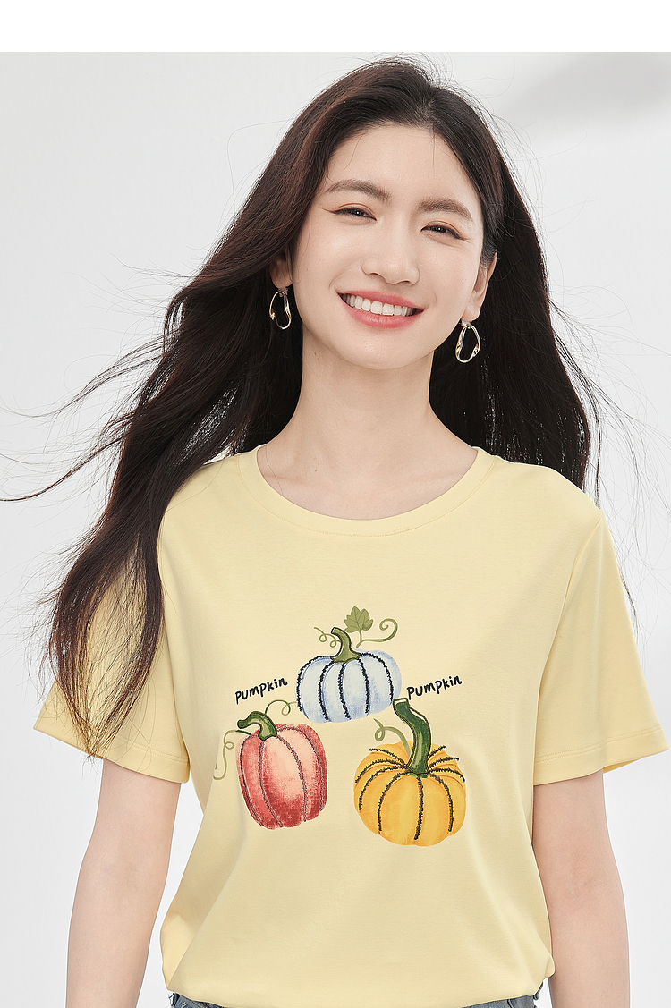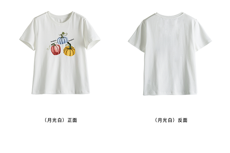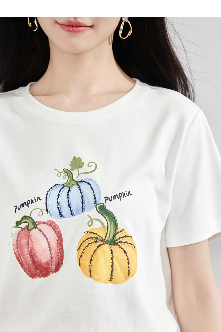 【专属特价】熙世界时尚创意南瓜印花T恤女短袖夏季百搭休闲减龄圆领正肩上衣
