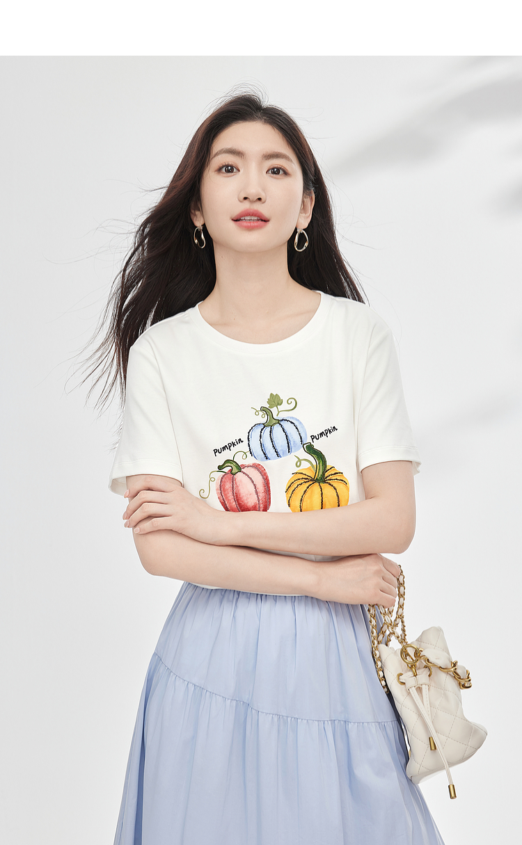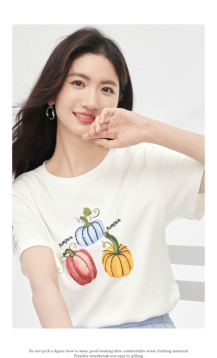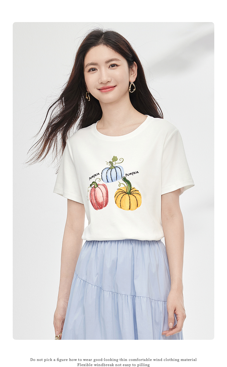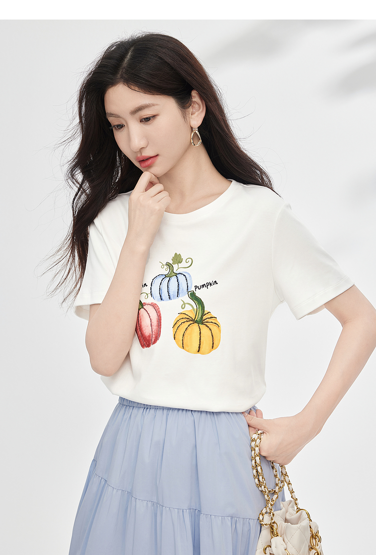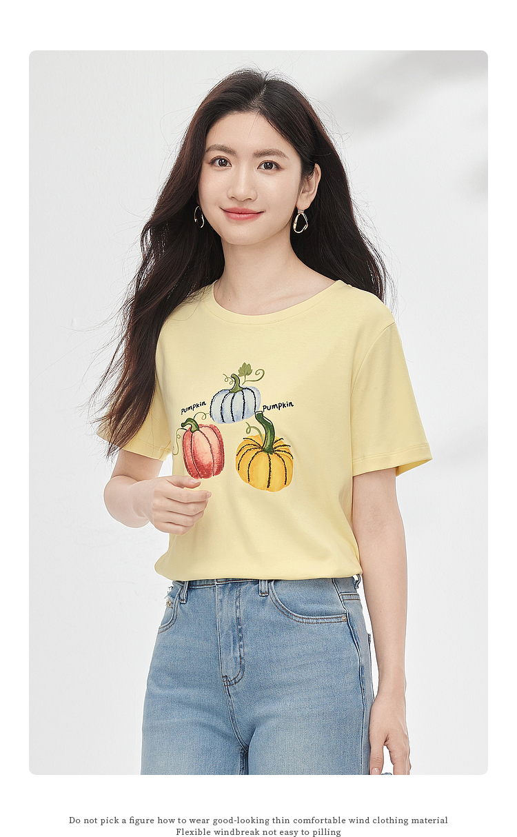 【专属特价】熙世界时尚创意南瓜印花T恤女短袖夏季百搭休闲减龄圆领正肩上衣