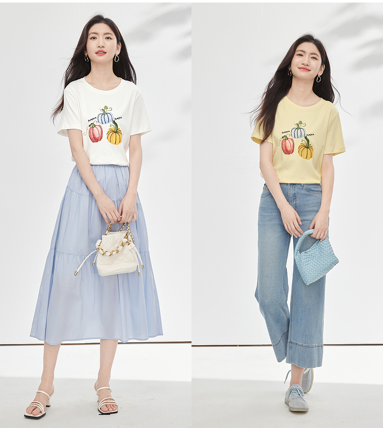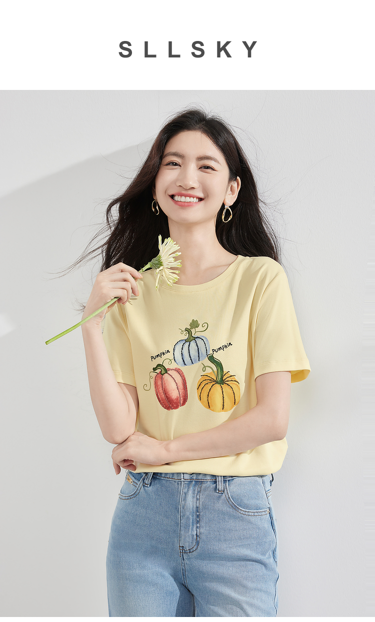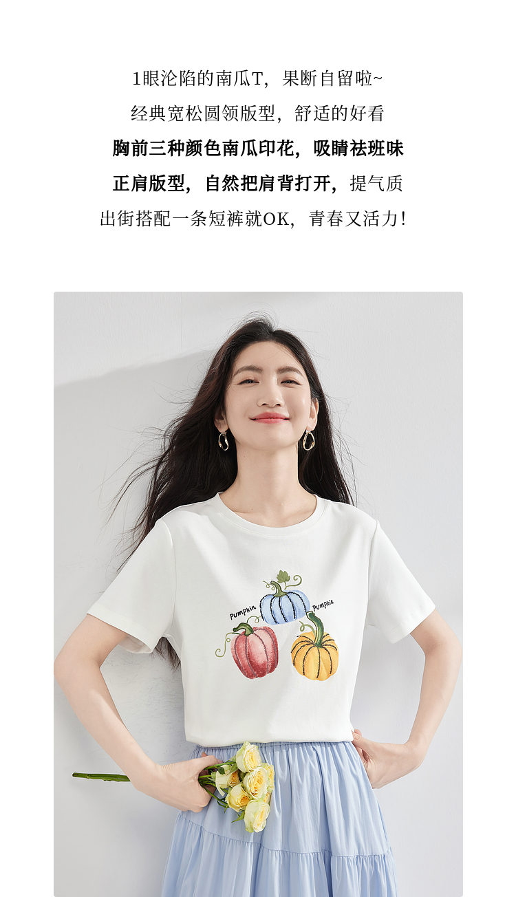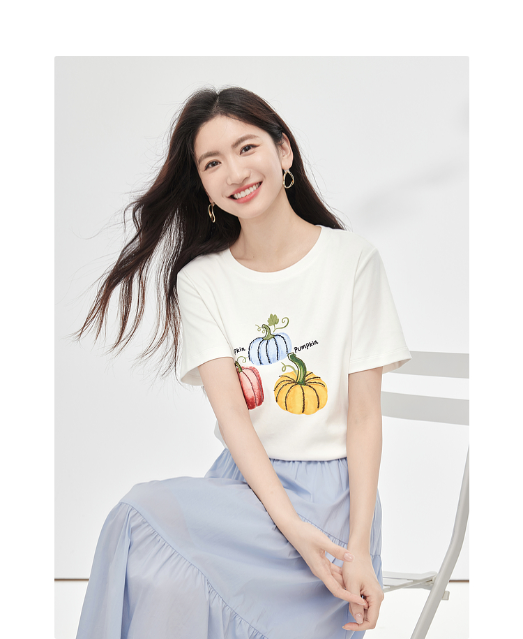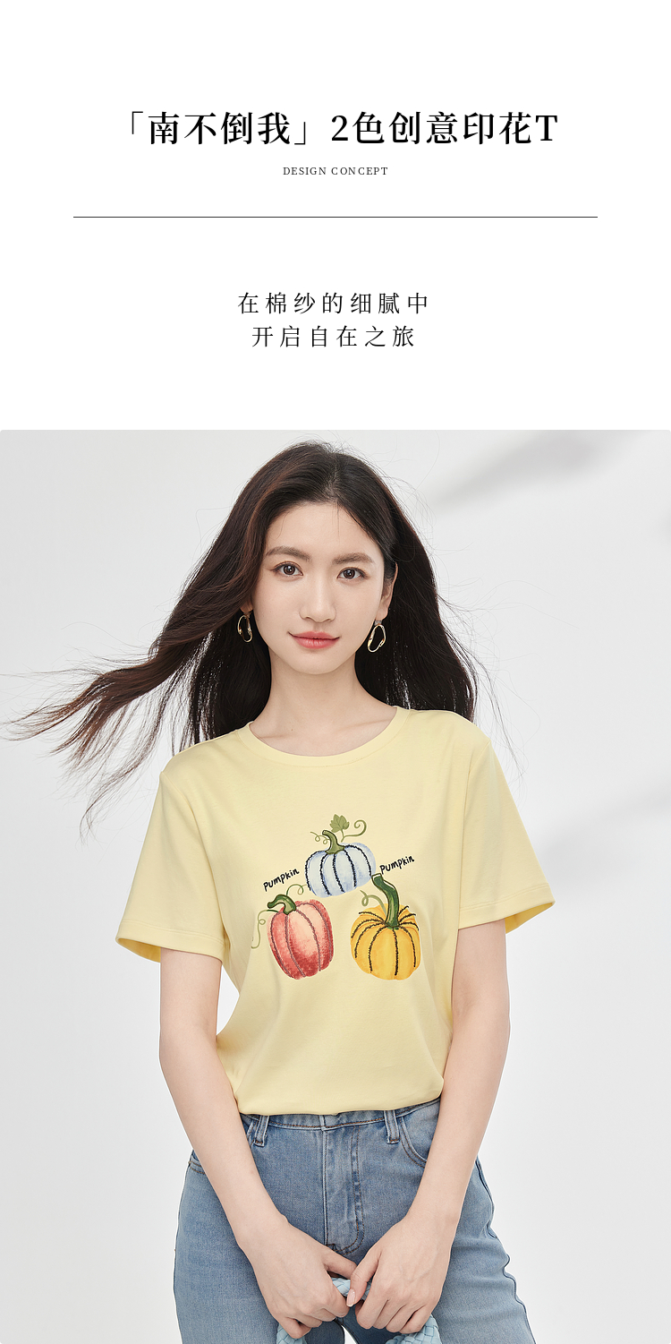【专属特价】熙世界时尚创意南瓜印花T恤女短袖夏季百搭休闲减龄圆领正肩上衣