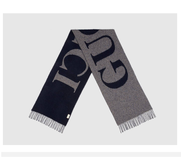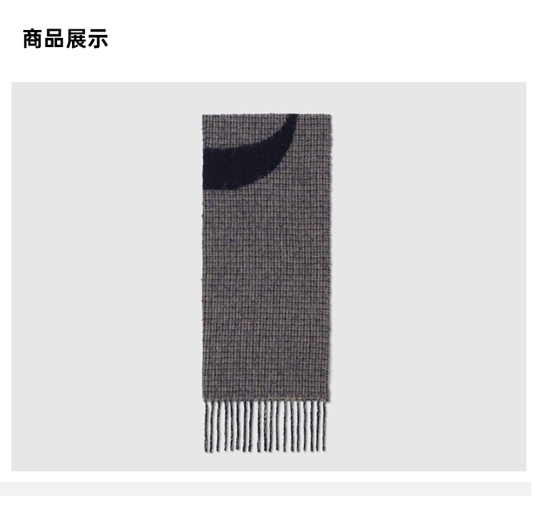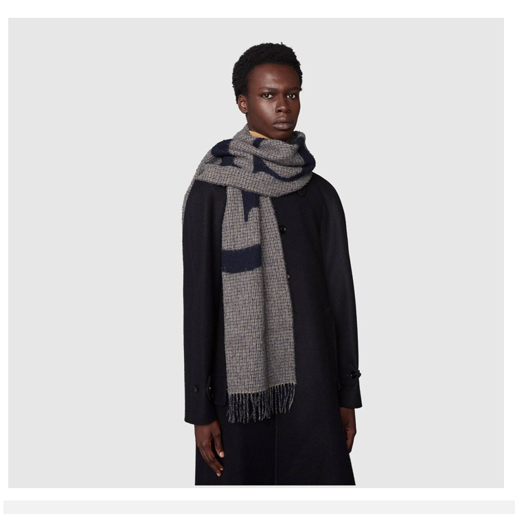 GUCCI 古驰 男士提花徽标字样羊毛混纺围巾 灰色 644403 4GA41 4368