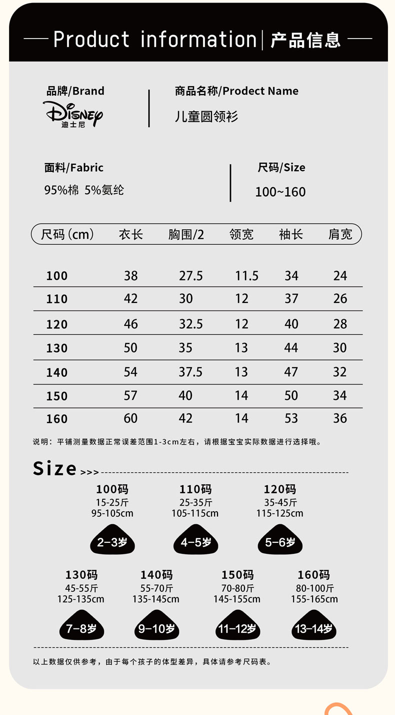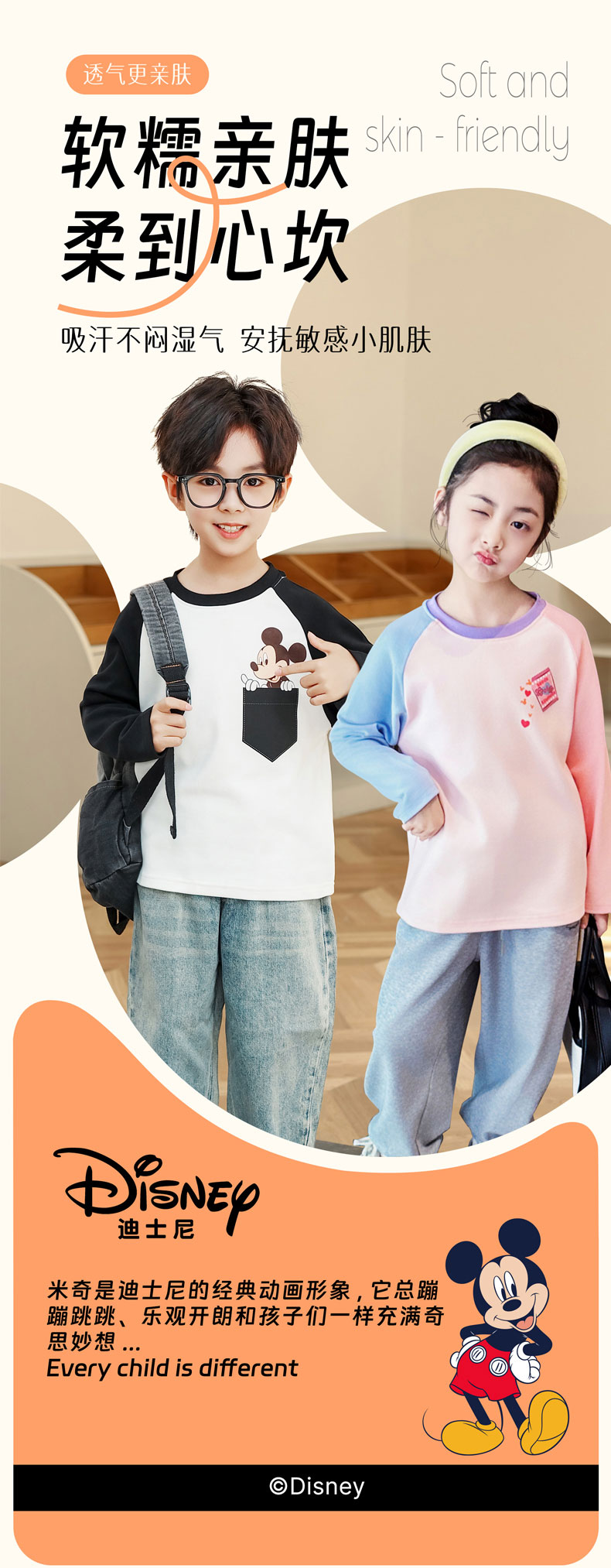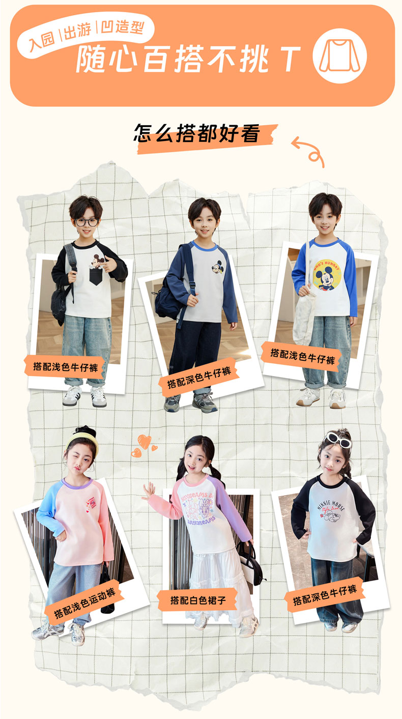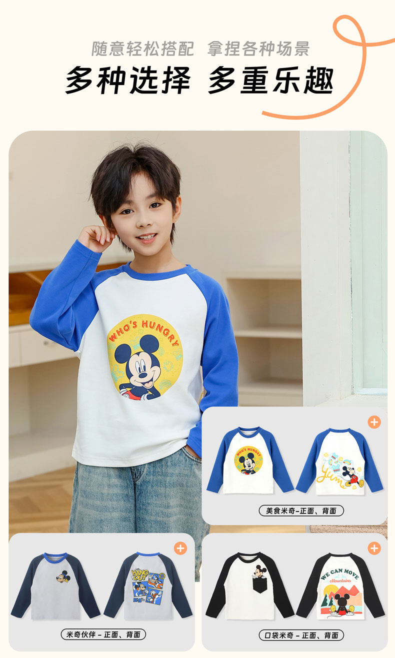 【顺丰发货】【69.9元/2件】迪士尼氨棉高品质儿童长袖T恤【9月“羊毛服装】