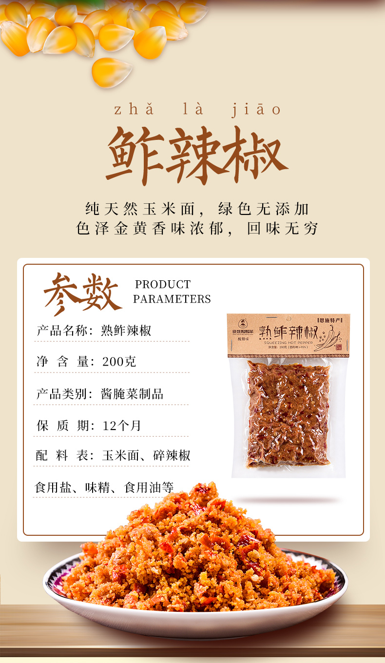 【消费助农】晓姚恩施土家 熟榨辣椒 200g*3袋