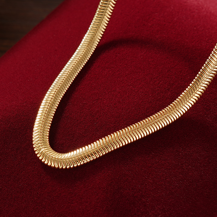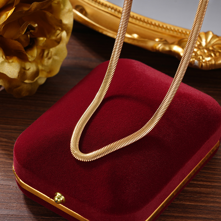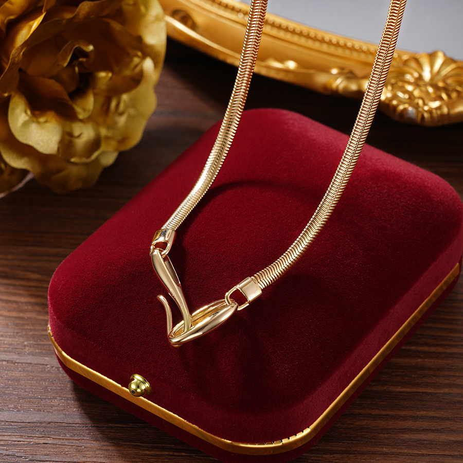 【寓意】:项链以蛇形链条为设计灵感,采用镀金工艺,展现出华丽而灵动的风格。巧妙地融合了白银的坚韧与灵蛇的柔情,既具有力量感又不失柔美。