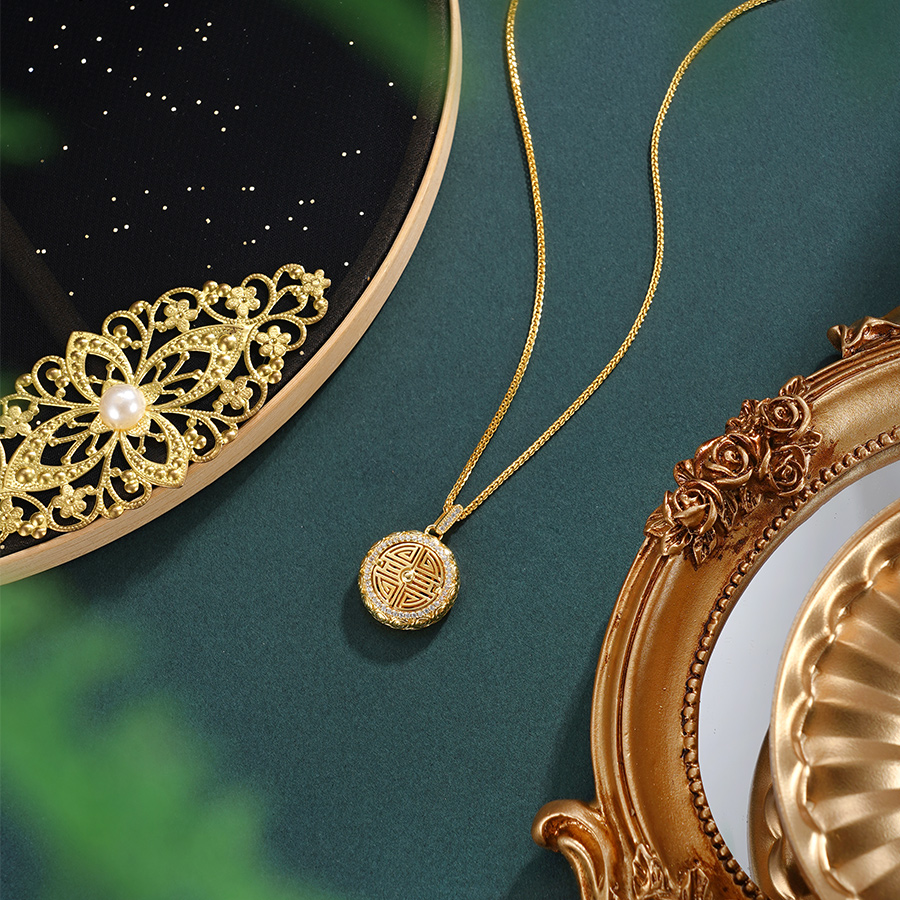 子佩集【福华妙韵】银S925套链【V10210HZA】项链镀金喜字2601