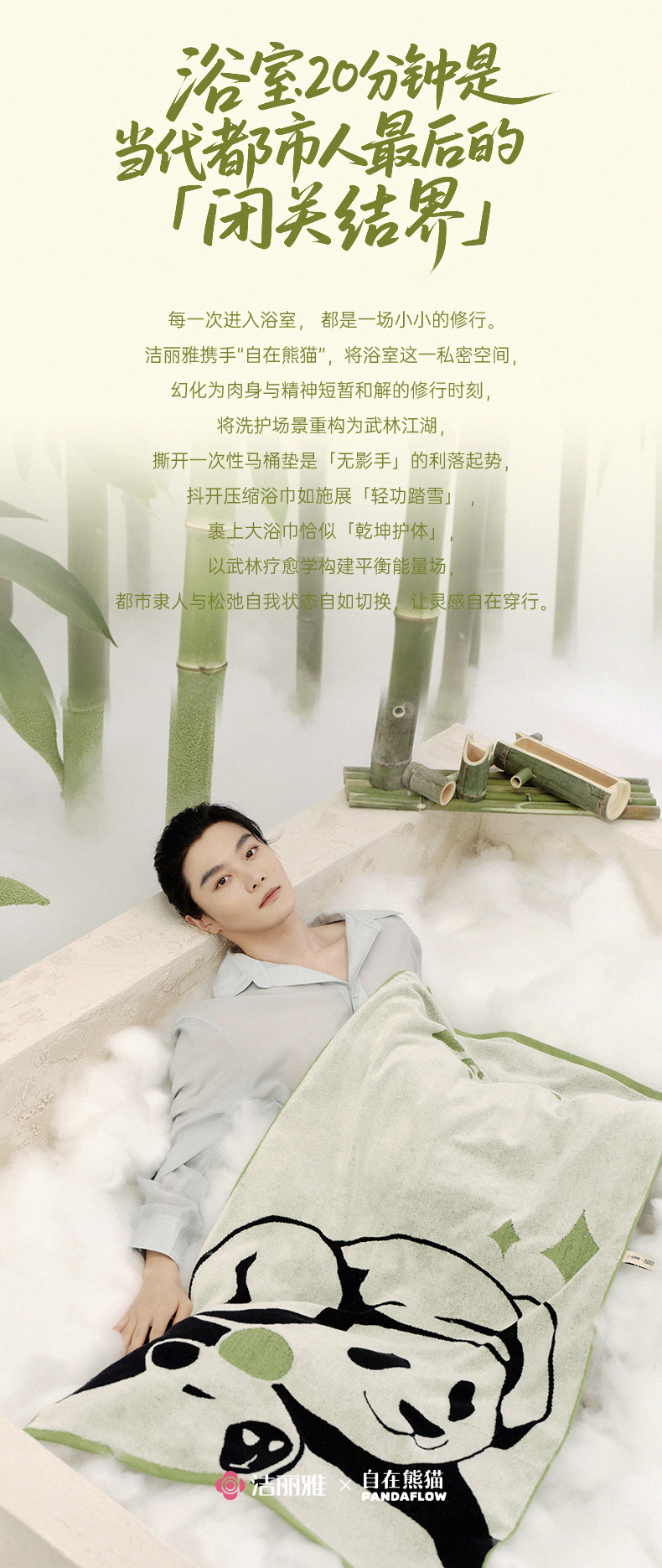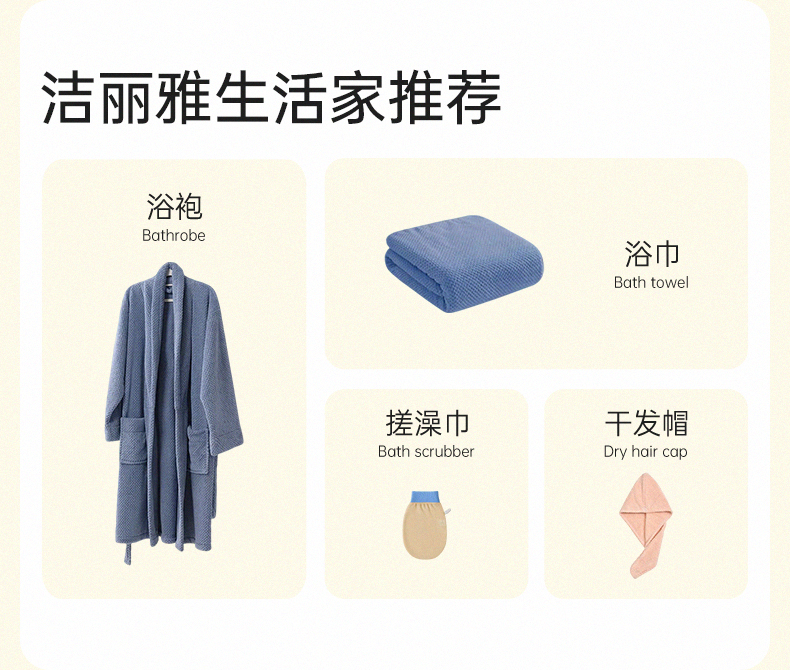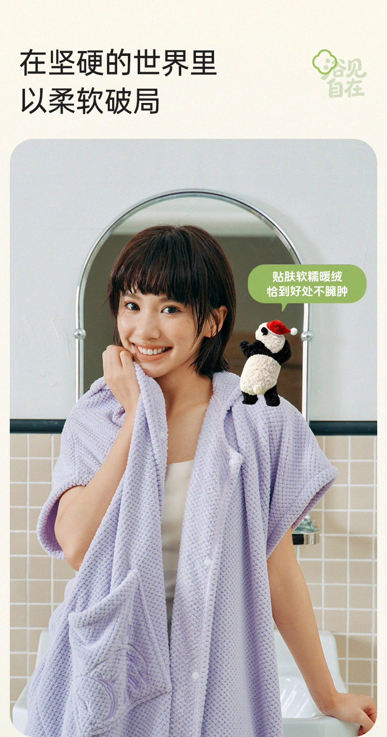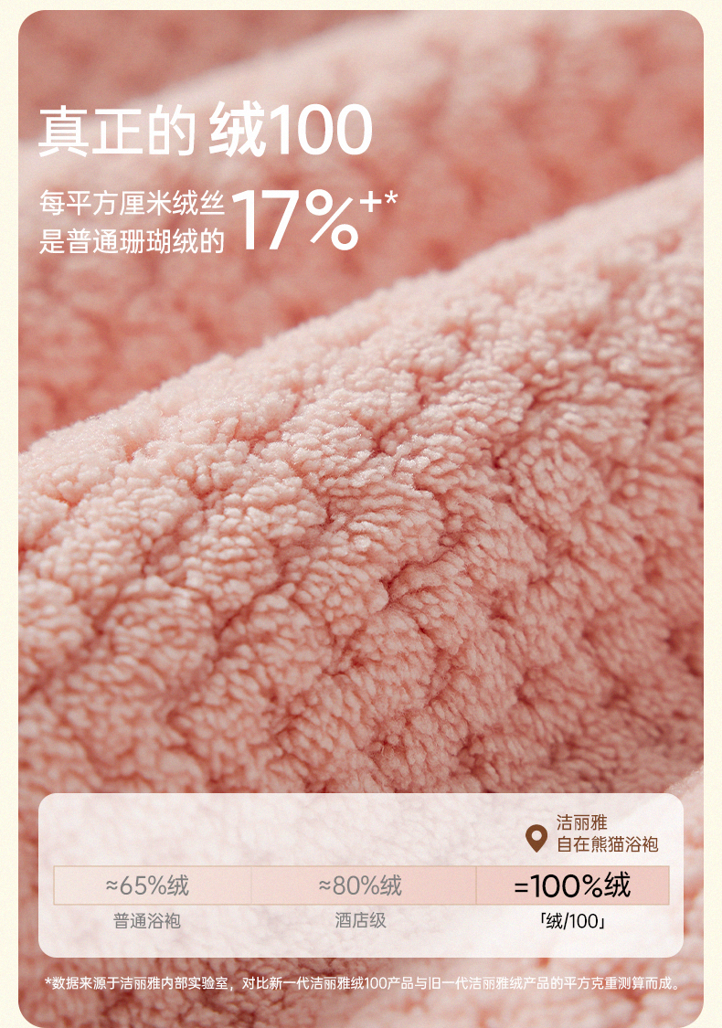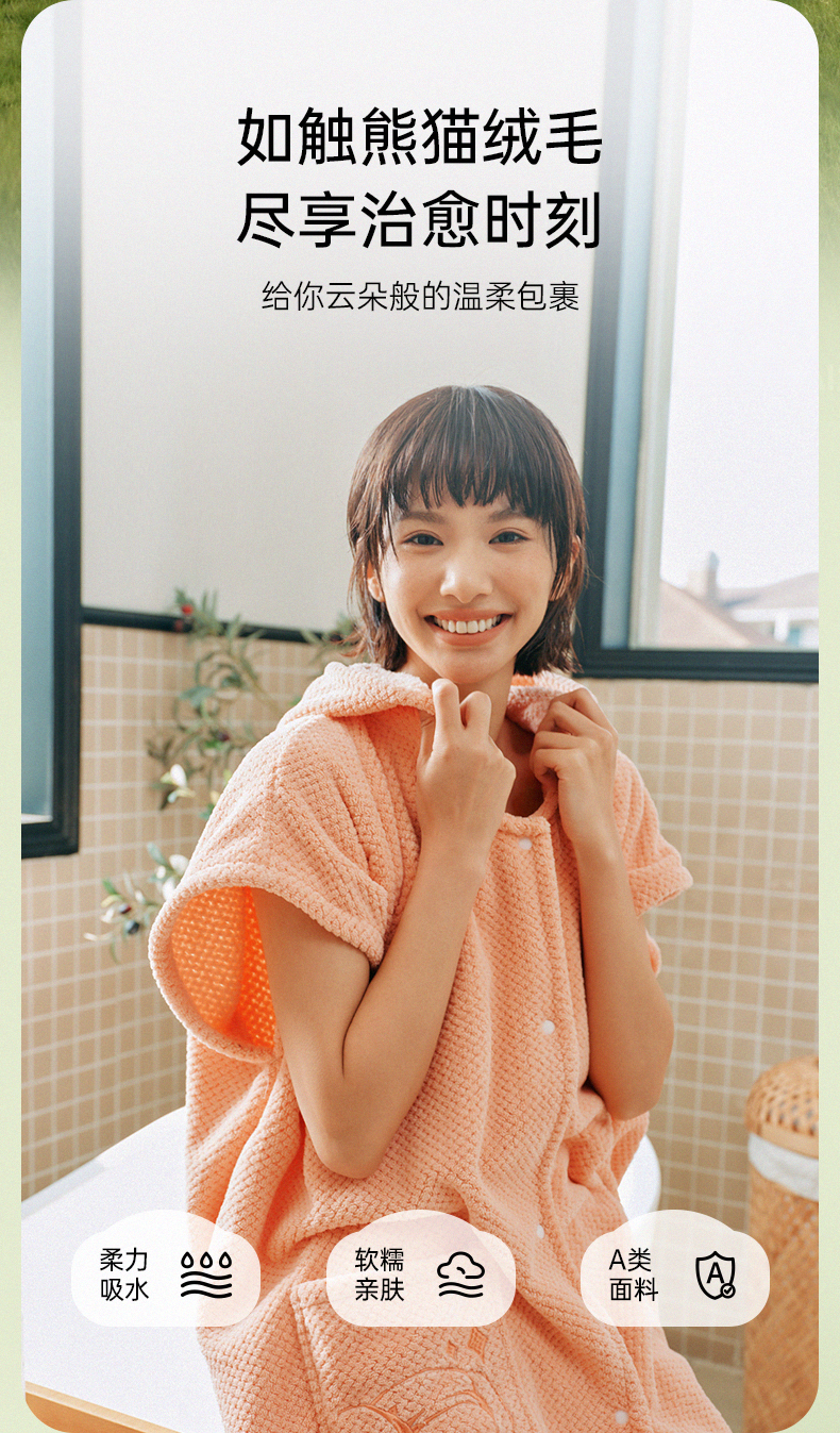 洁丽雅自在熊猫连帽短袖浴袍成人可穿式加长家用洗澡吸水浴裙宿舍