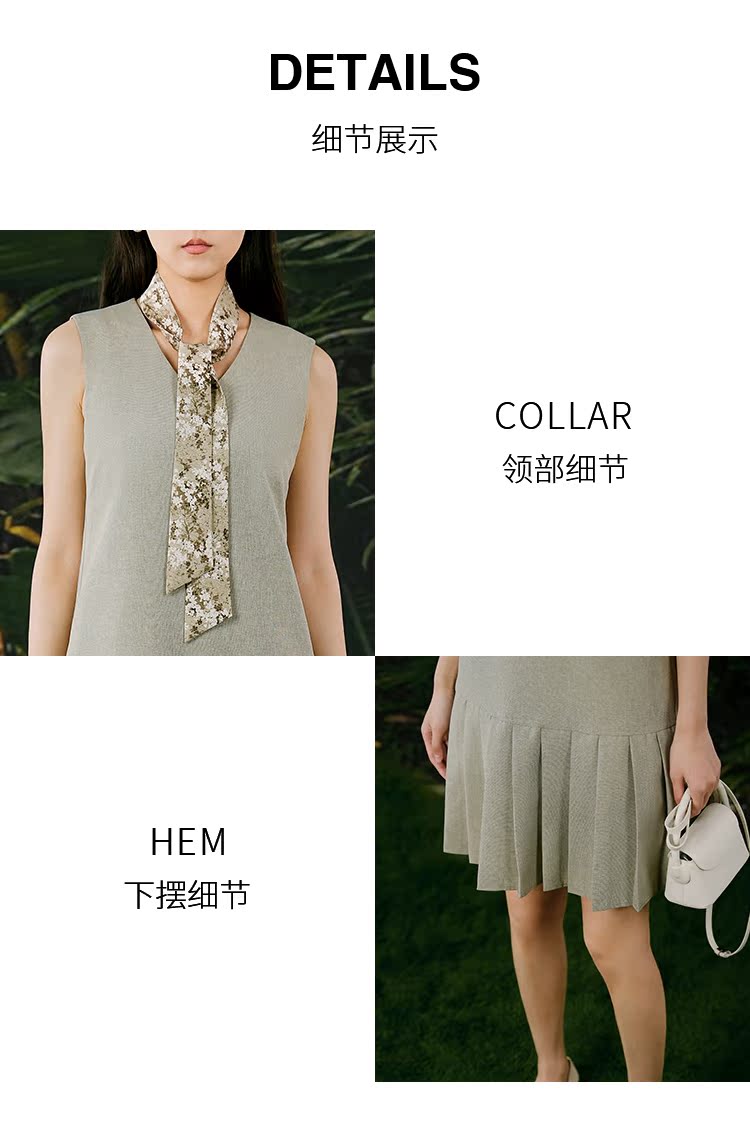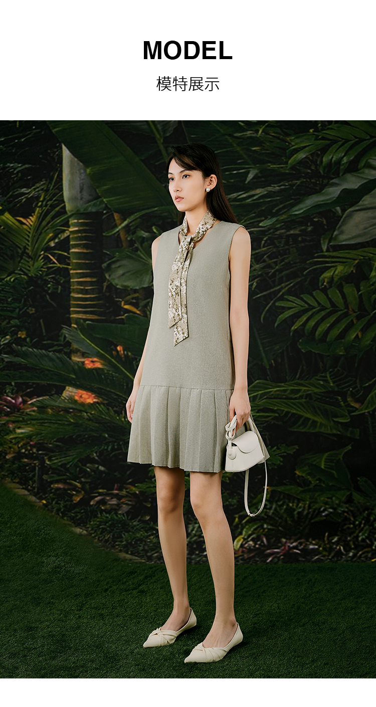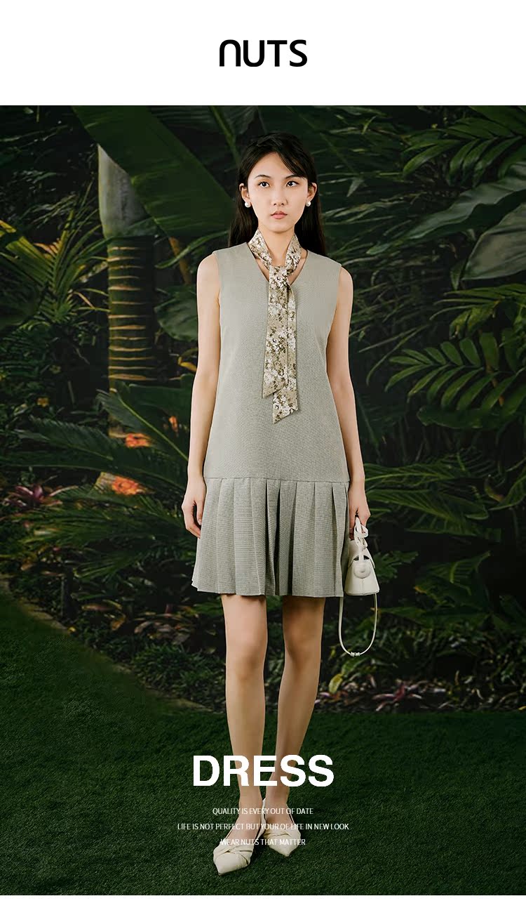NUTS春秋季新款气质百搭宽松显瘦无袖百褶连衣裙短裙414101112