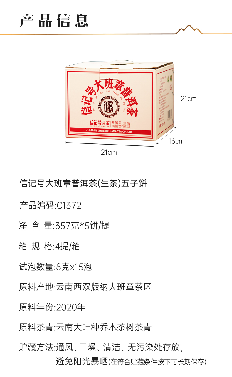 八马信记号|普洱生茶 大班章(357克*5饼) C1372