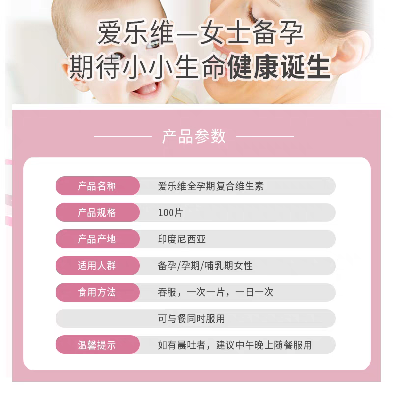 【跨境进口】备孕/孕期/哺乳期叶酸 | 澳洲进口elevit爱乐维女性 备孕哺乳期复合维生素胶囊孕妇营养素女性备孕叶酸100粒 | 报关后不支持退换货