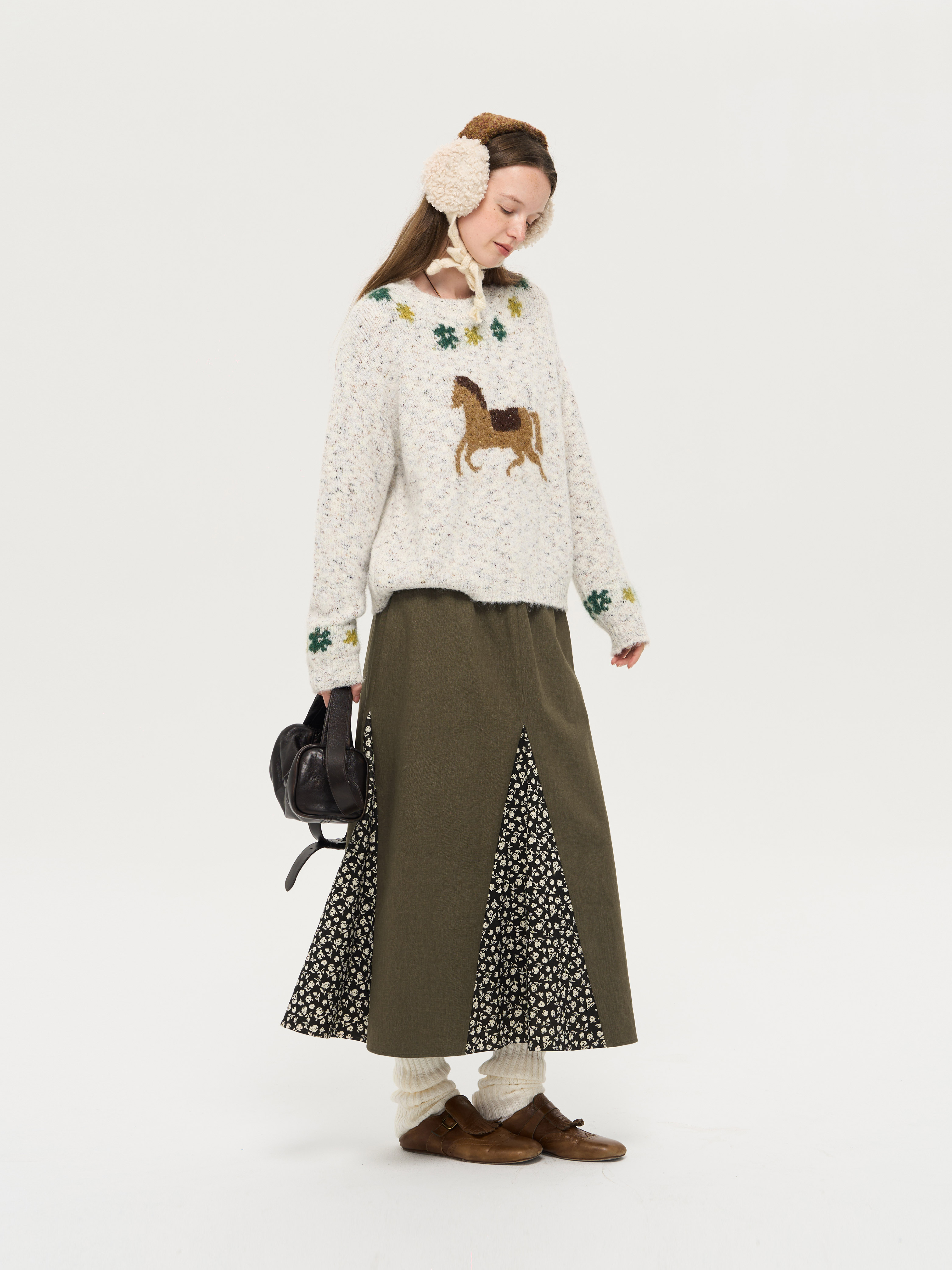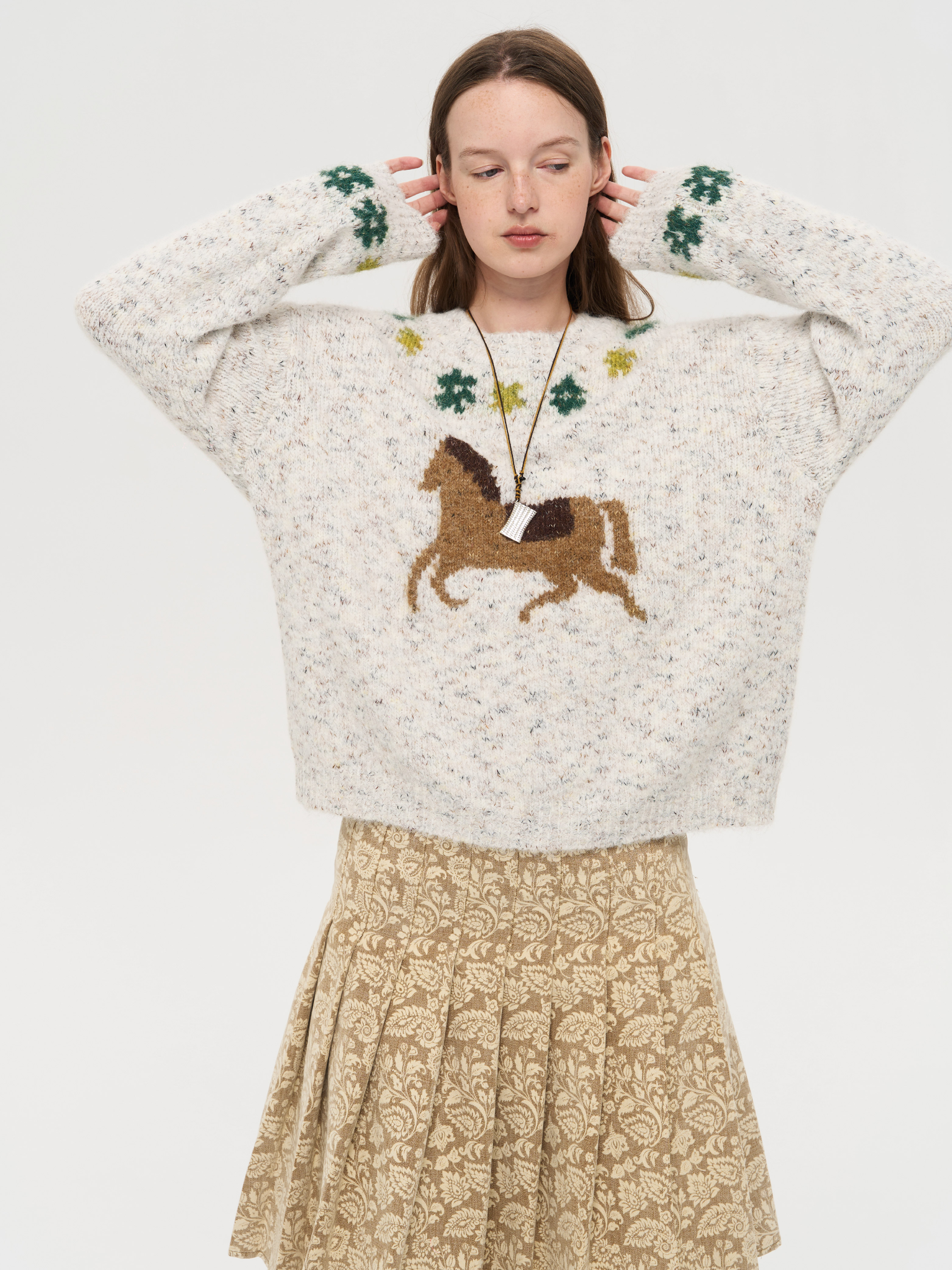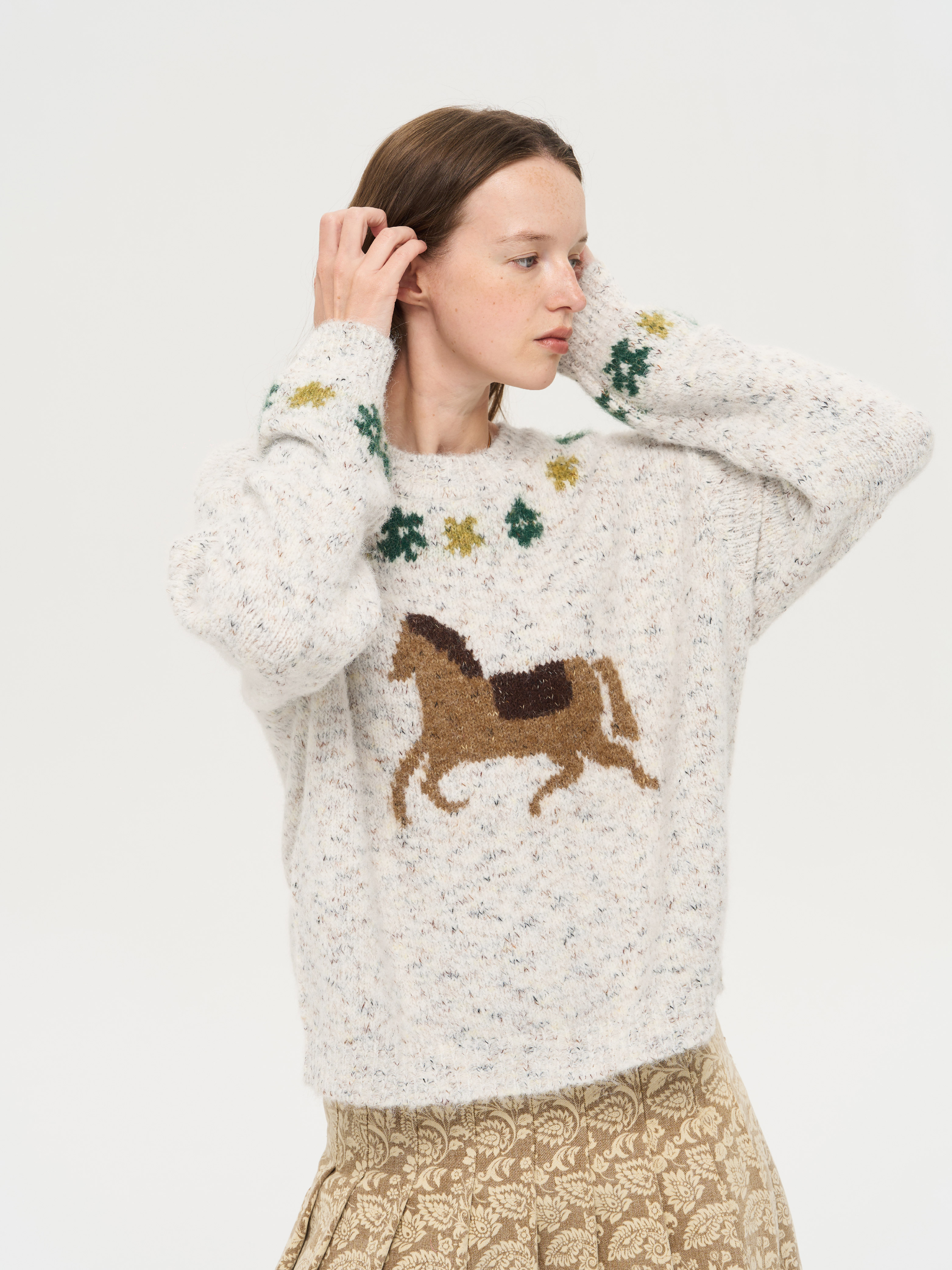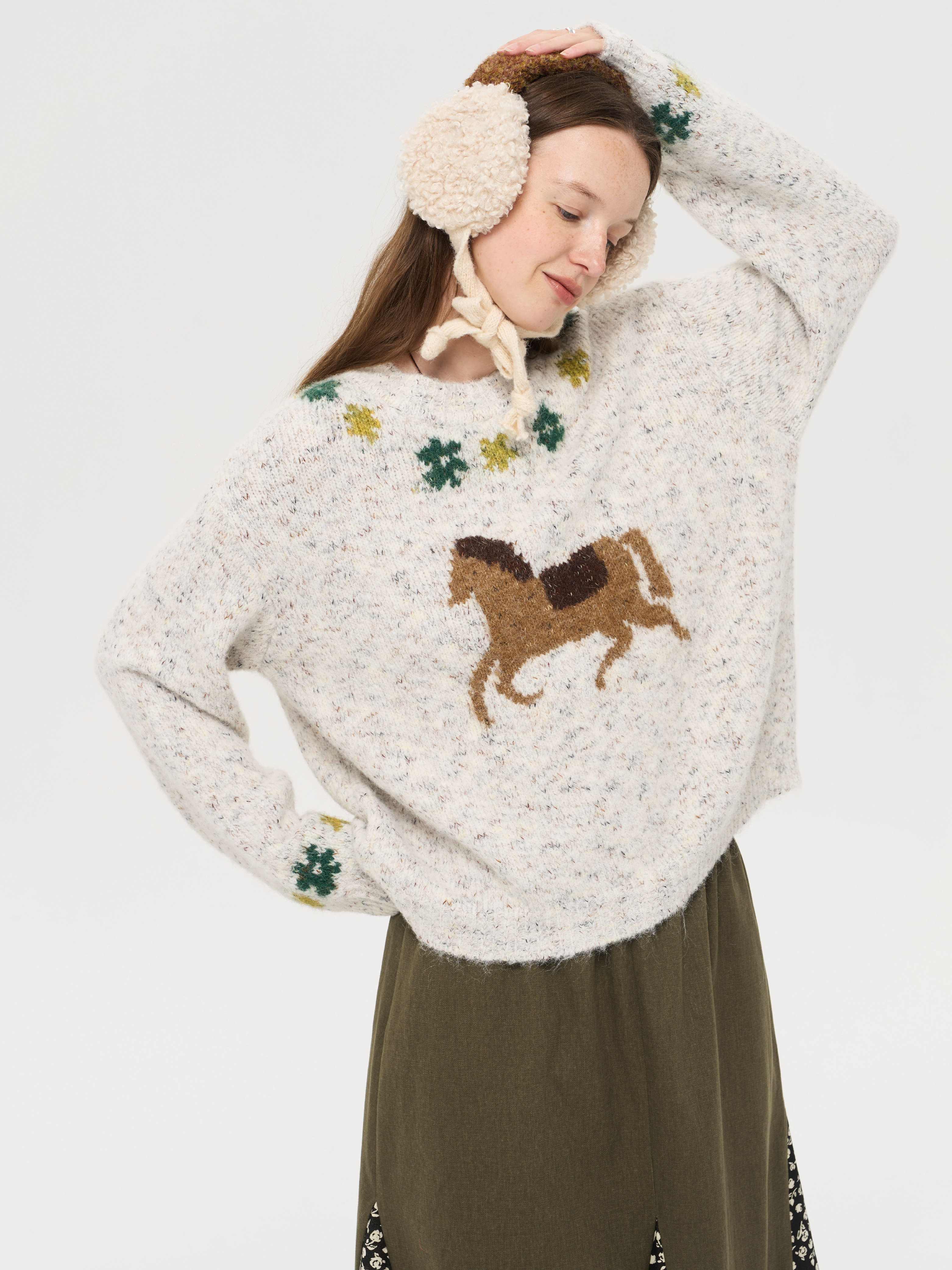 local tag/lt25awk47/花园小马 提花温暖松软套头针织混纱毛衣