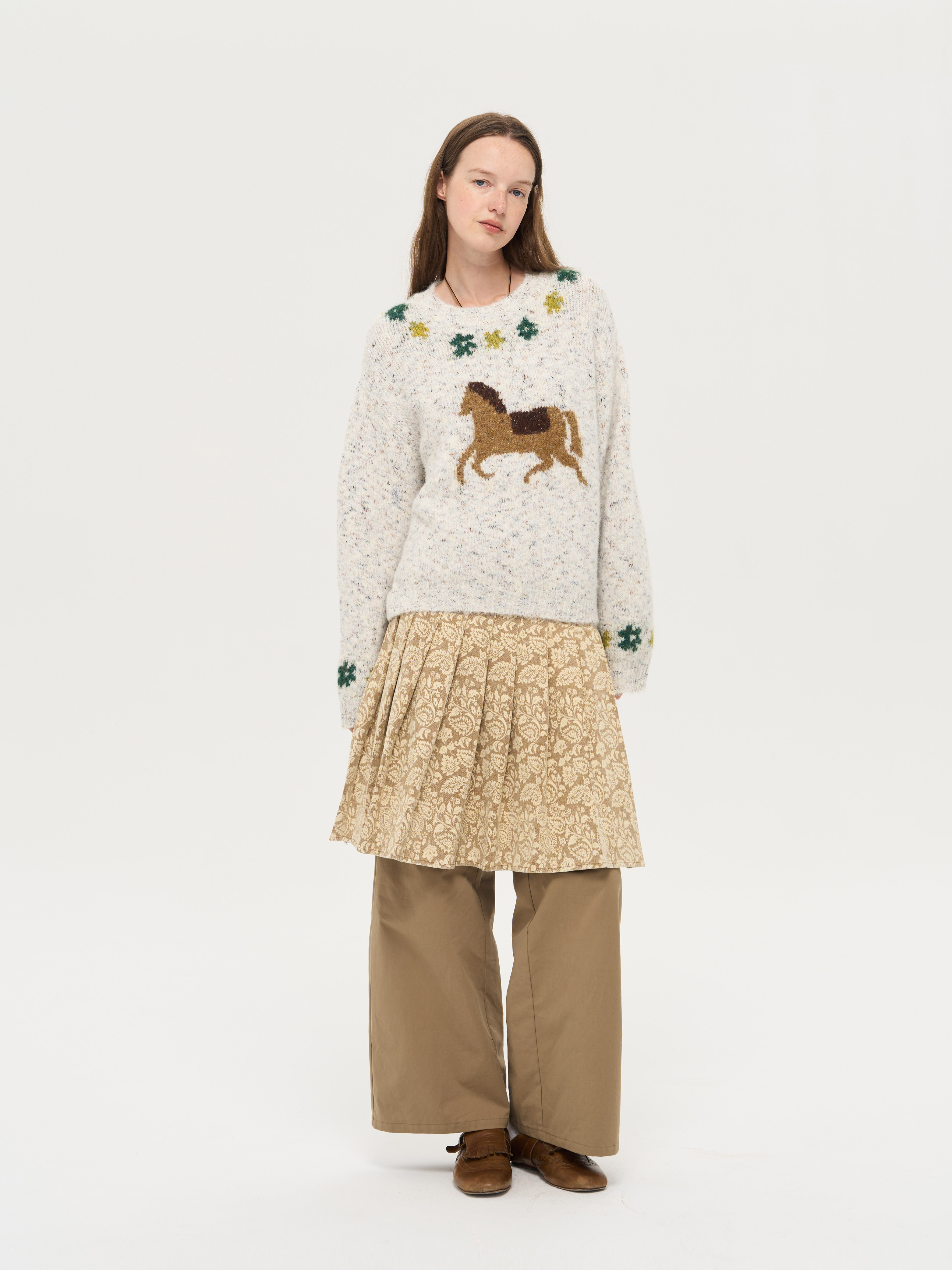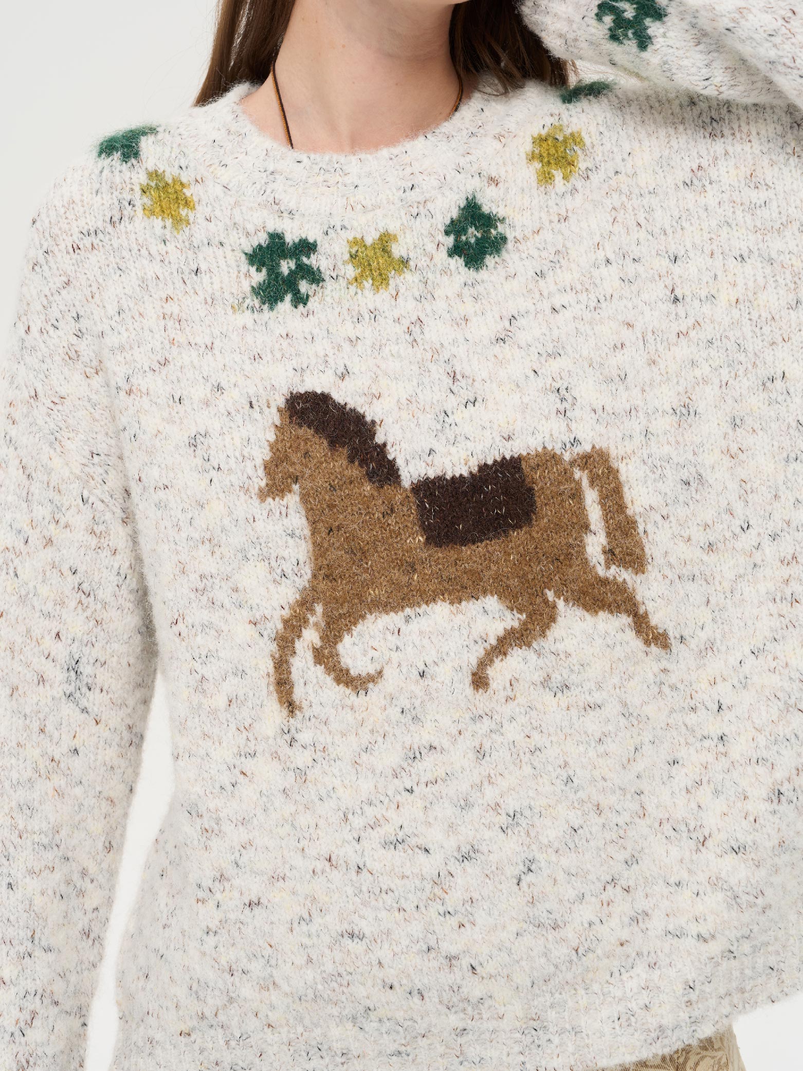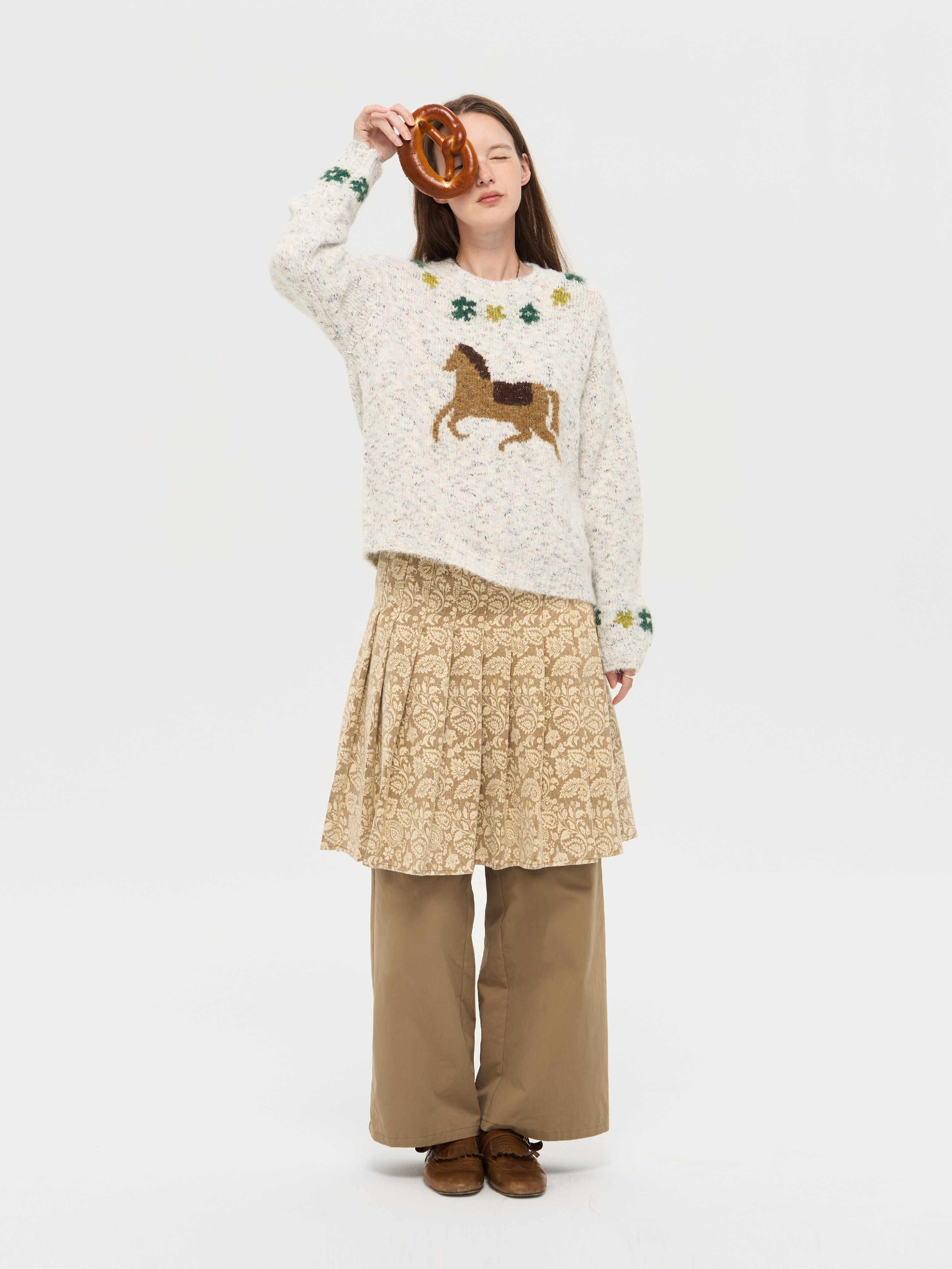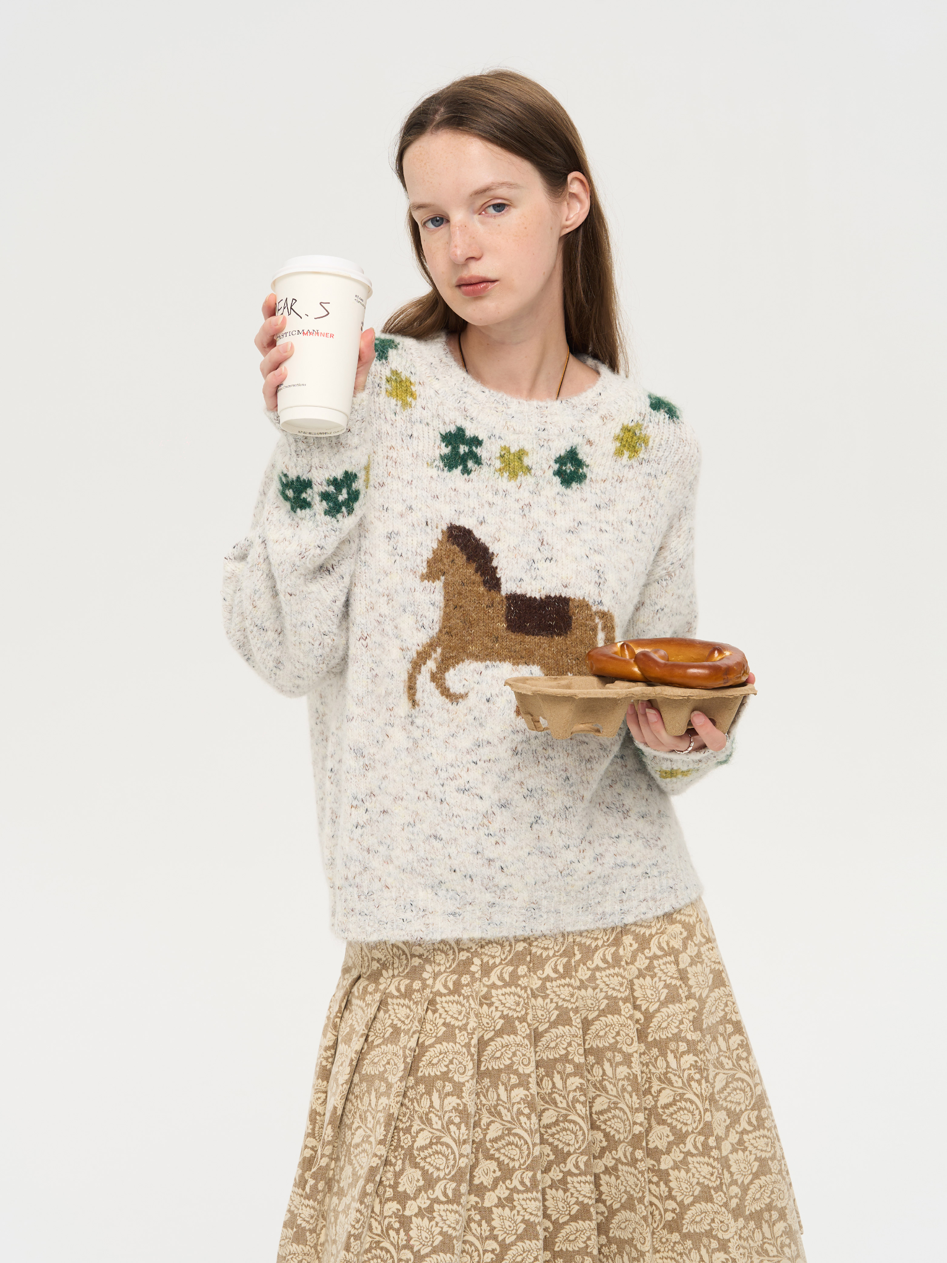 local tag/lt25awk47/花园小马 提花温暖松软套头针织混纱毛衣