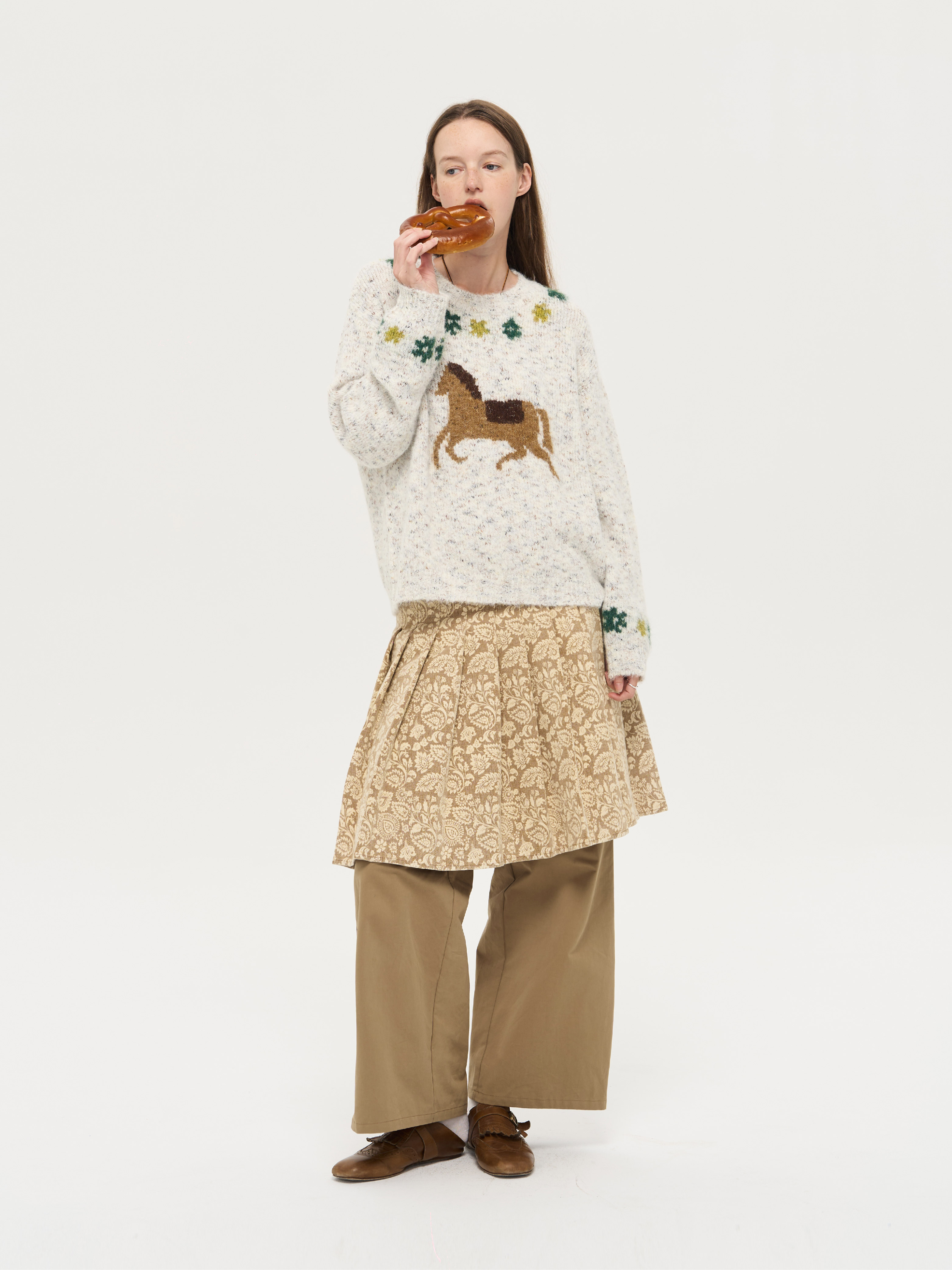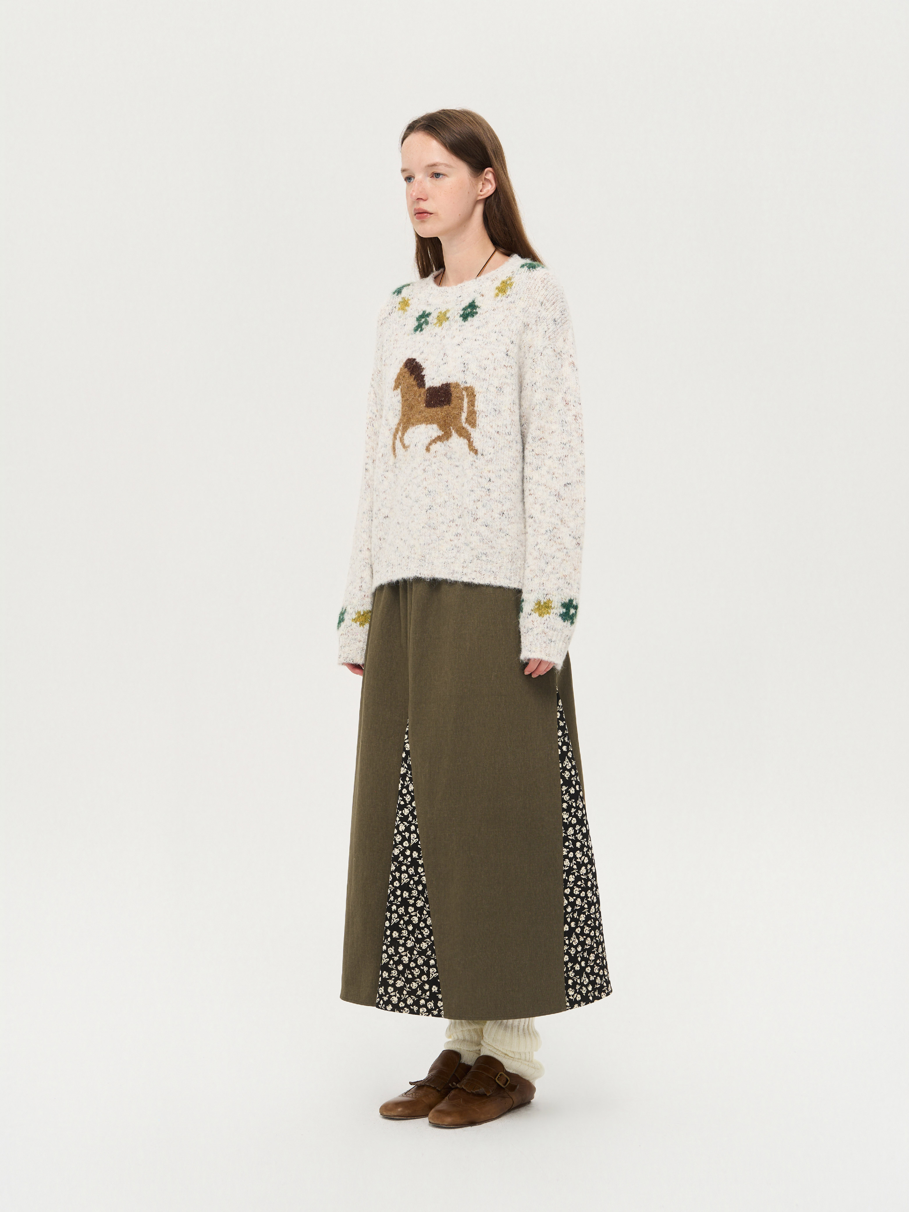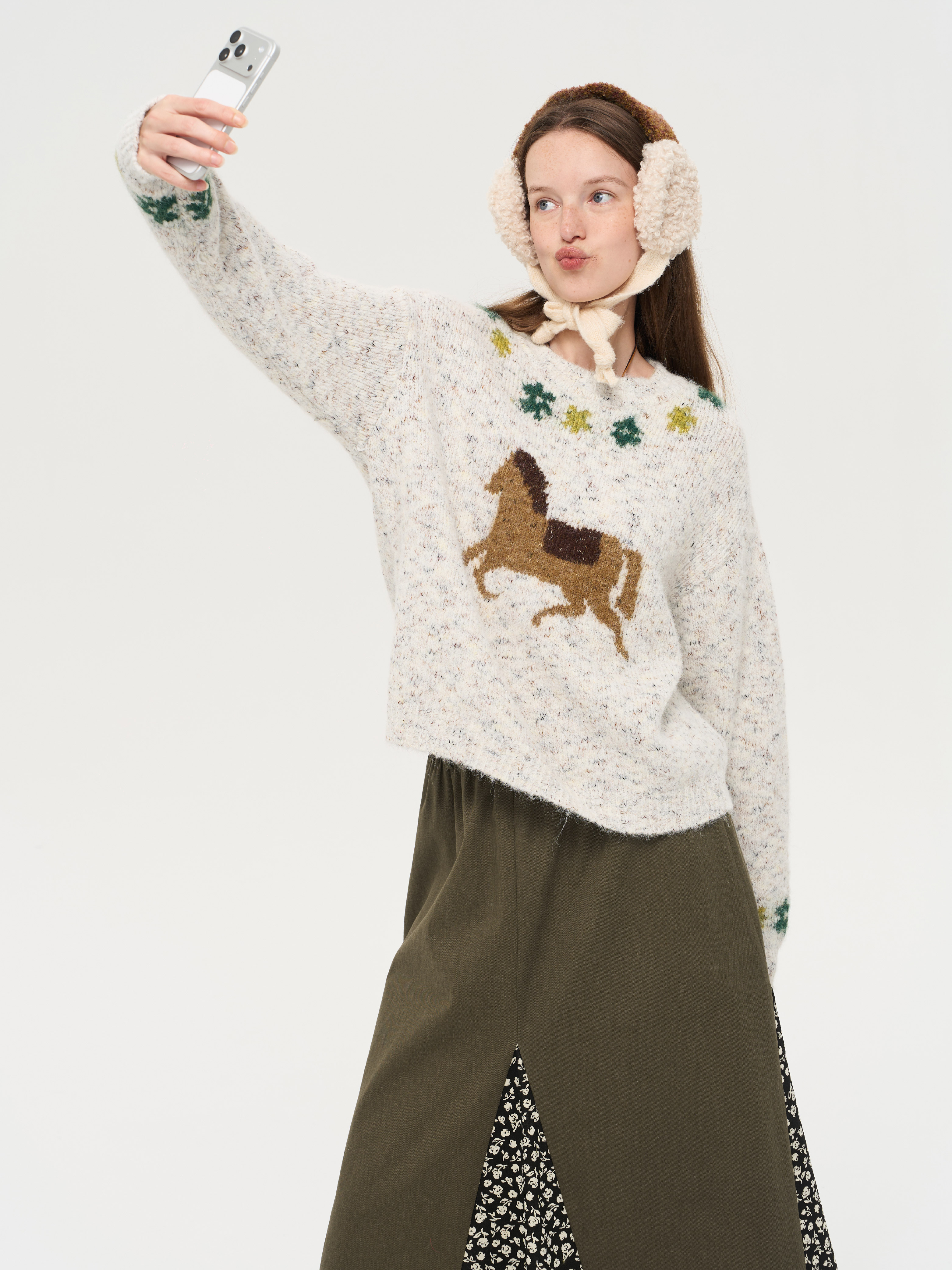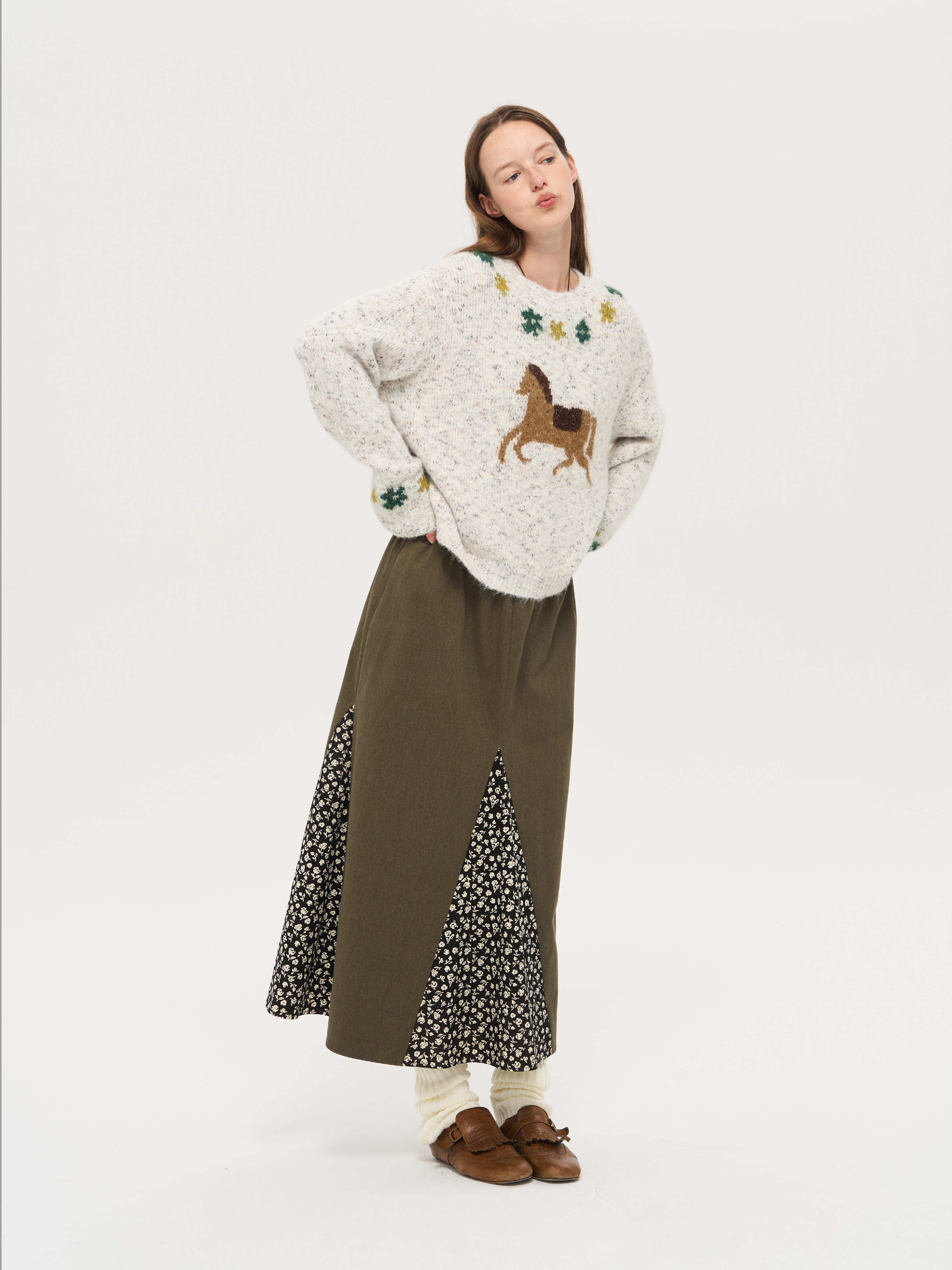 local tag/lt25awk47/花园小马 提花温暖松软套头针织混纱毛衣