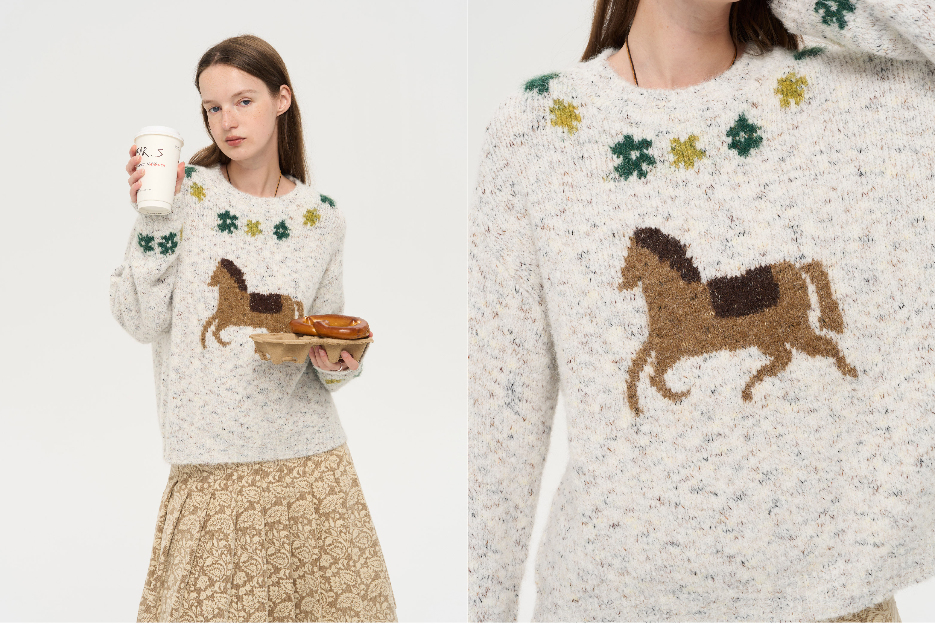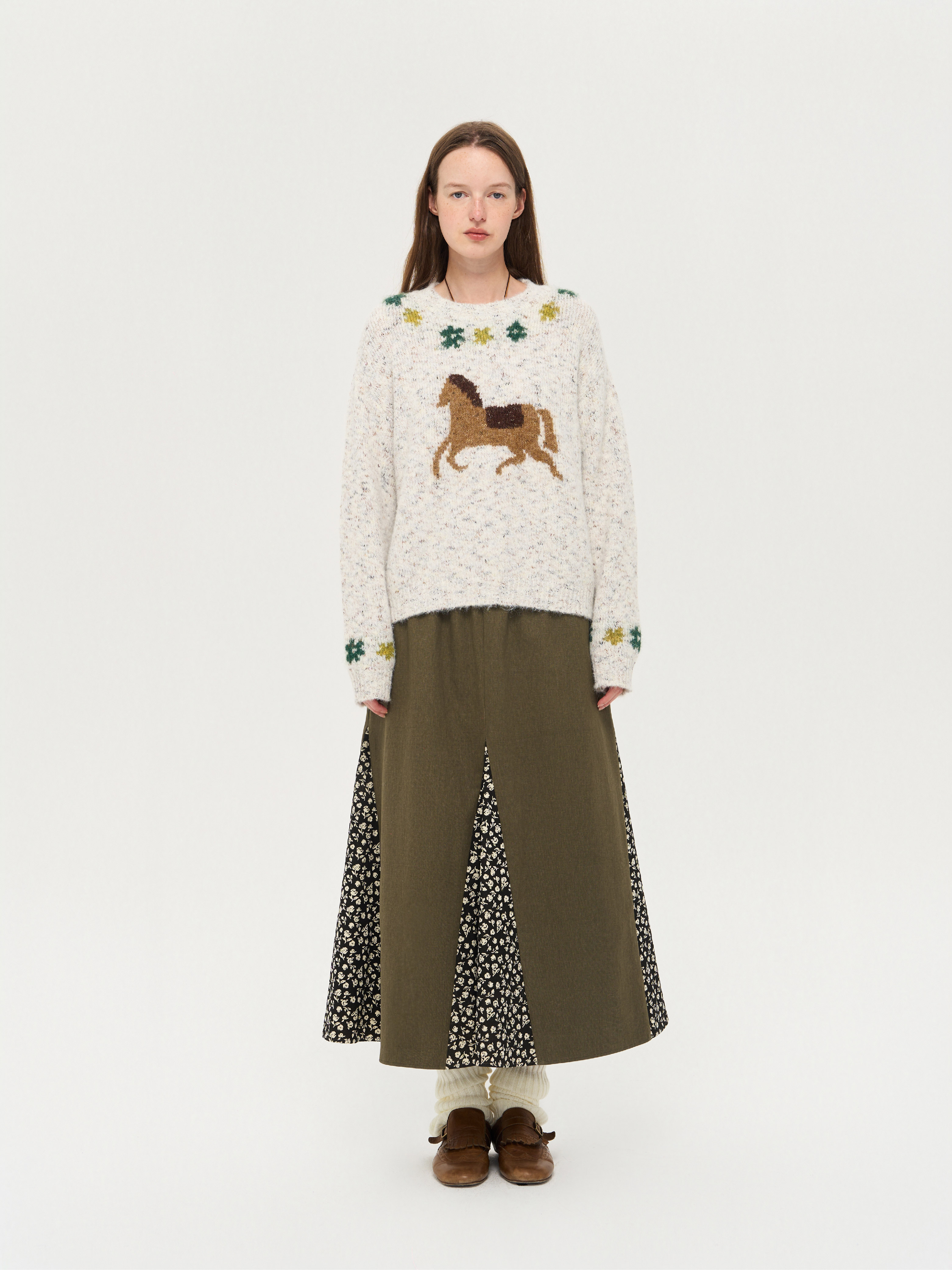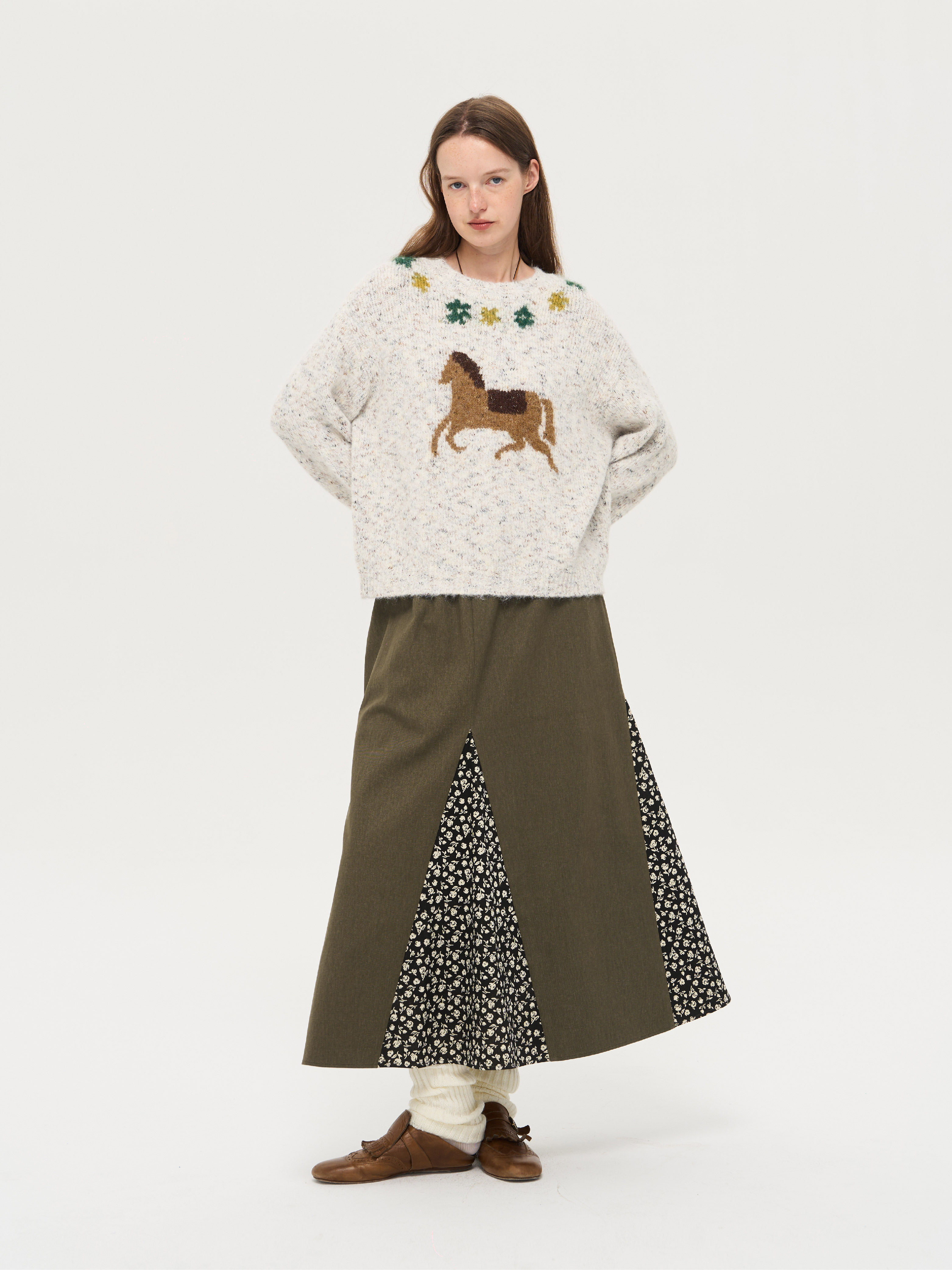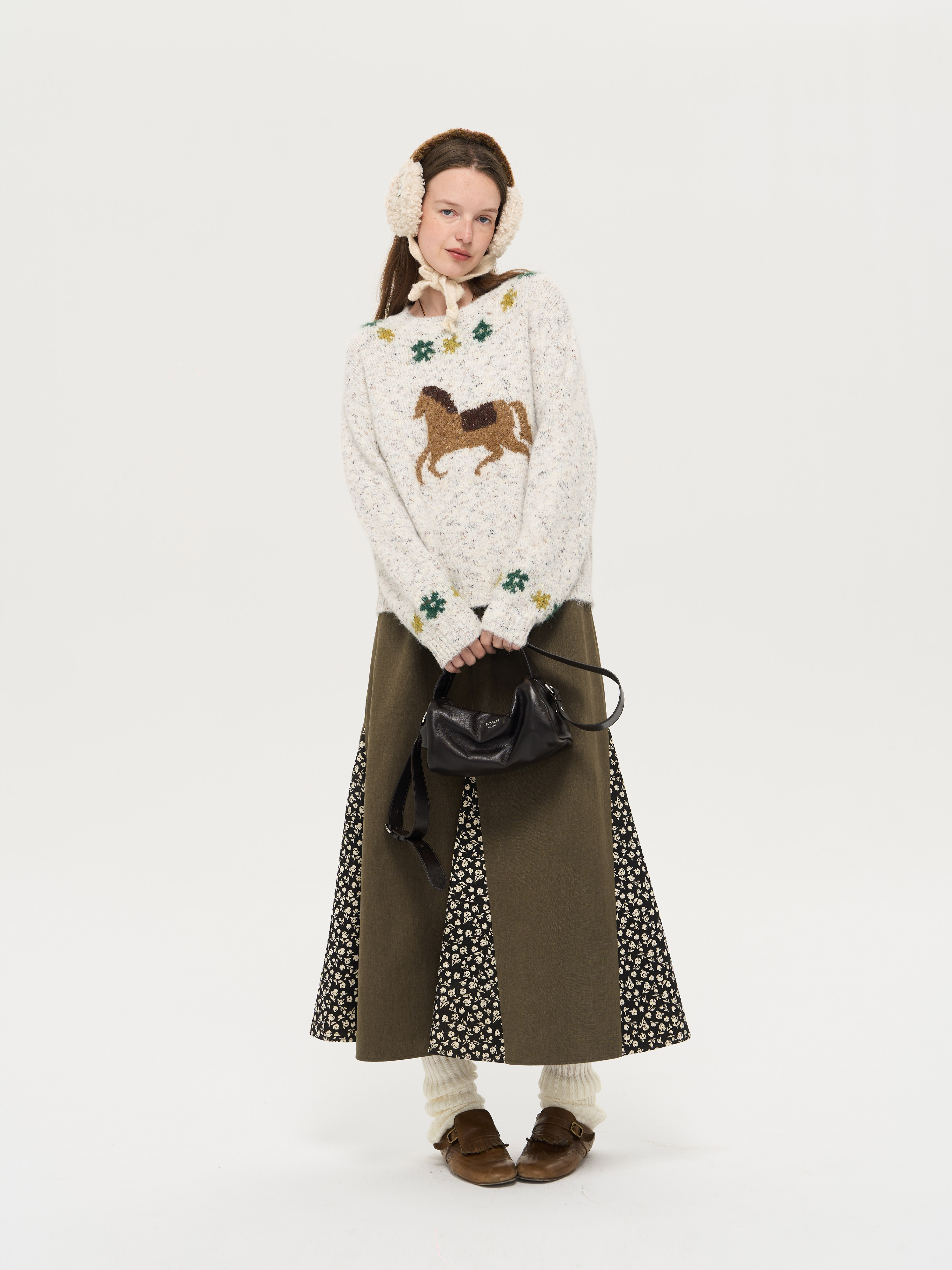 local tag/lt25awk47/花园小马 提花温暖松软套头针织混纱毛衣