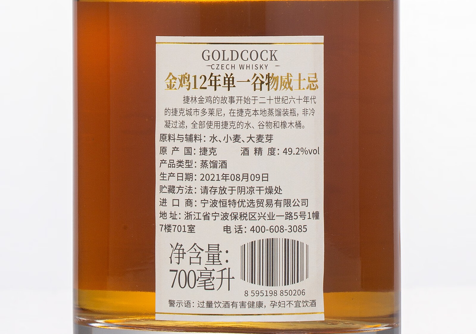 【单瓶】捷林金鸡12年单一谷物威士忌 700ml 49.2%vol 捷克原瓶进口