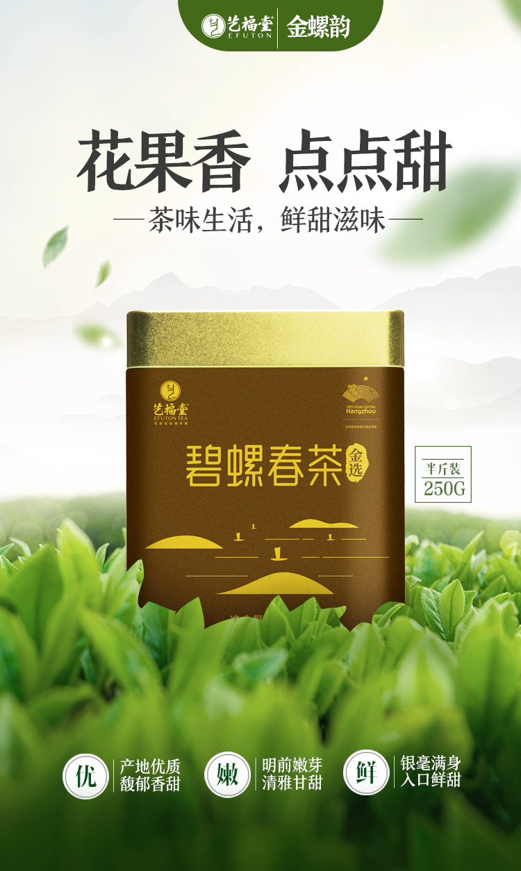 【新茶上市】艺福堂2025新茶碧螺春金选250g/罐(方罐/J)