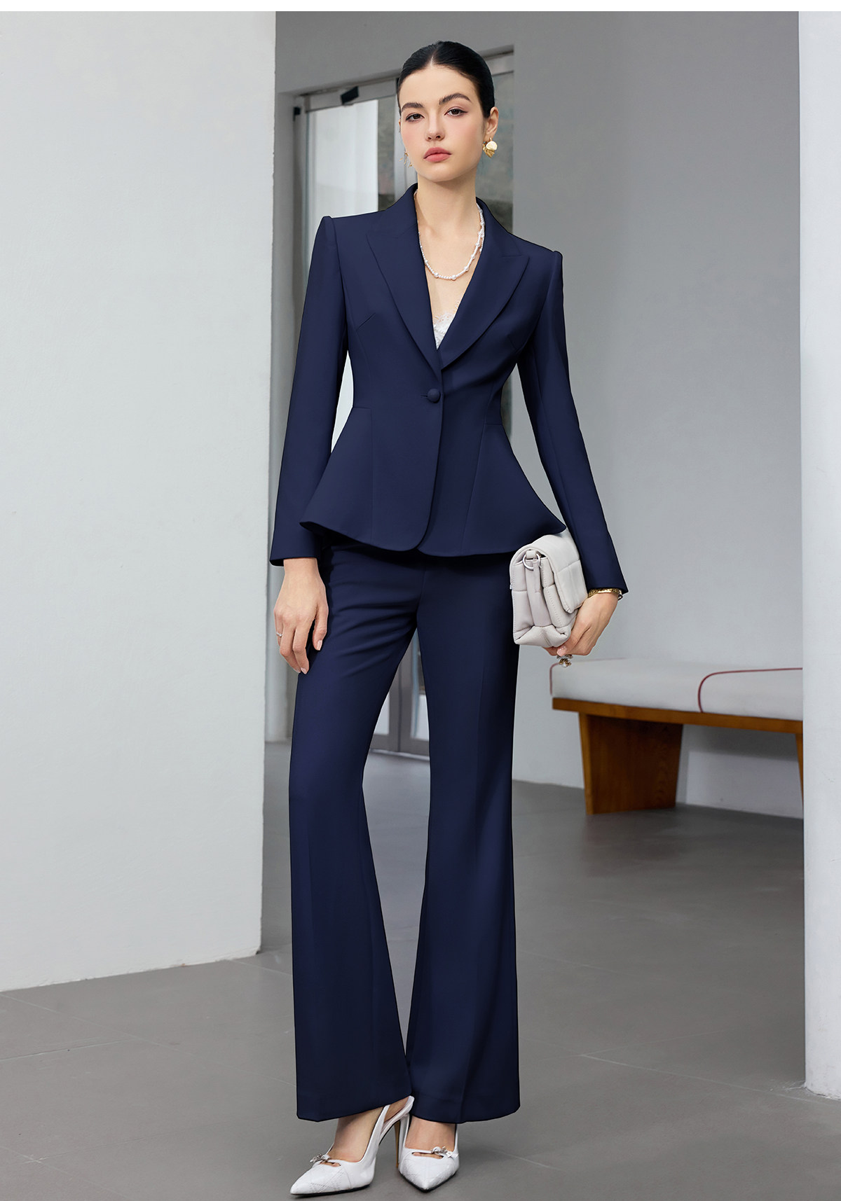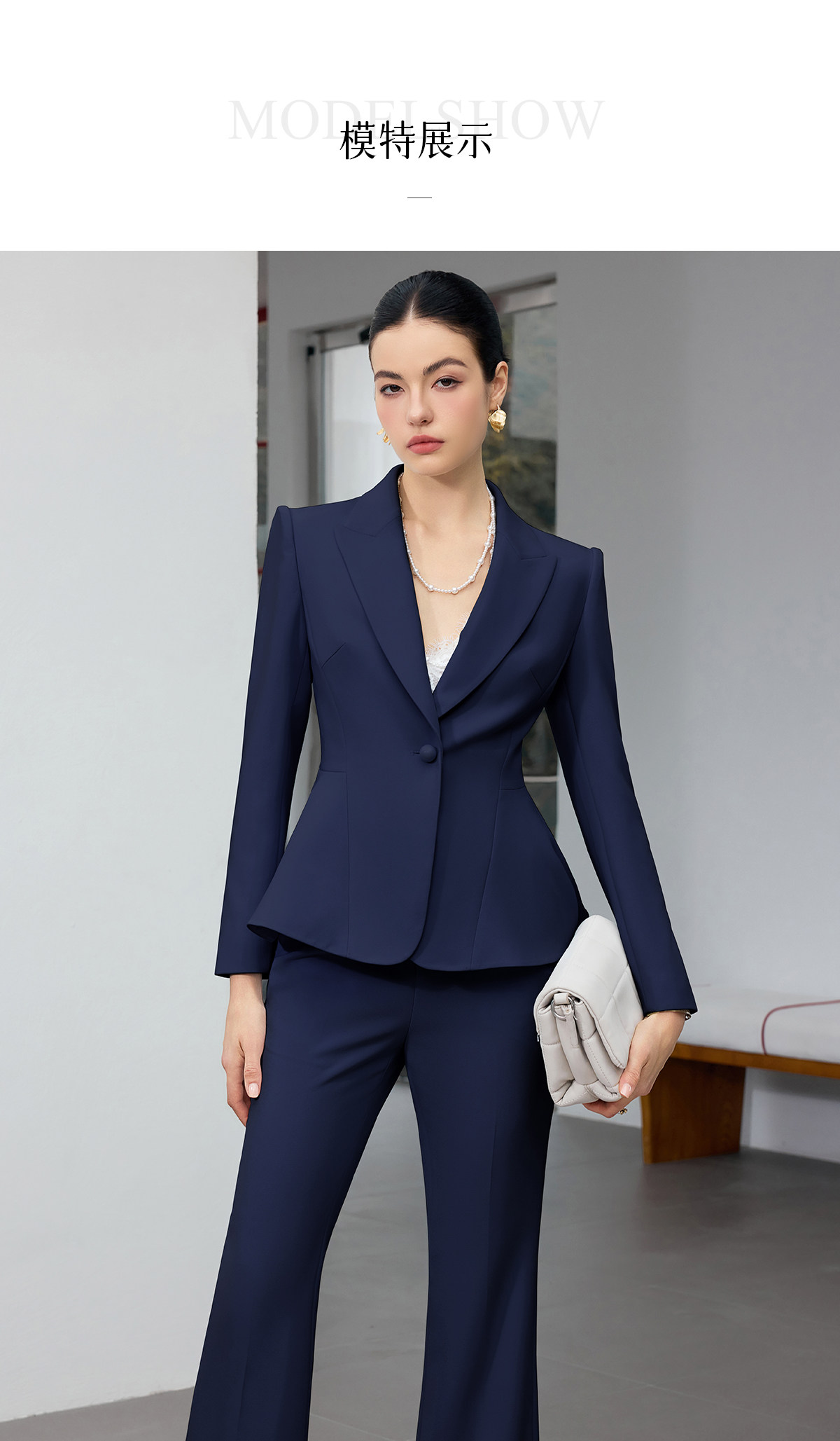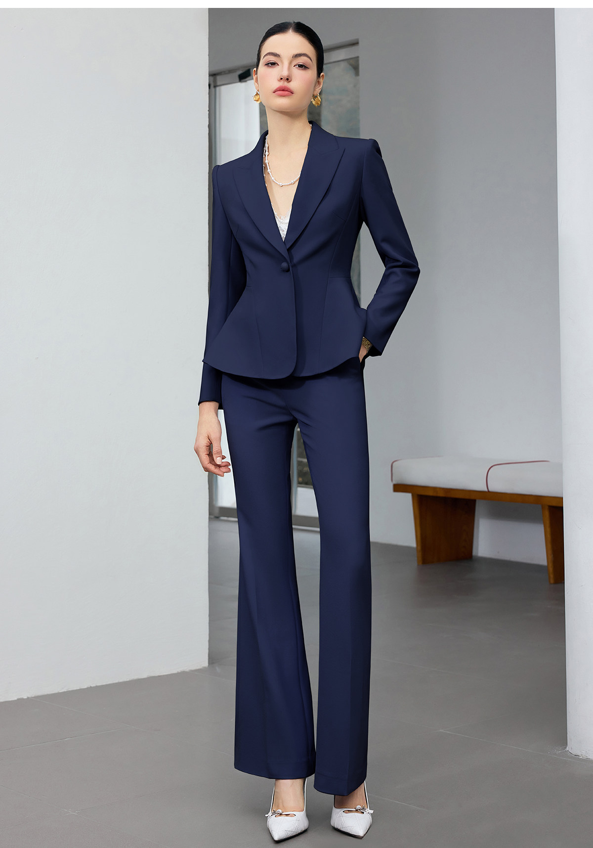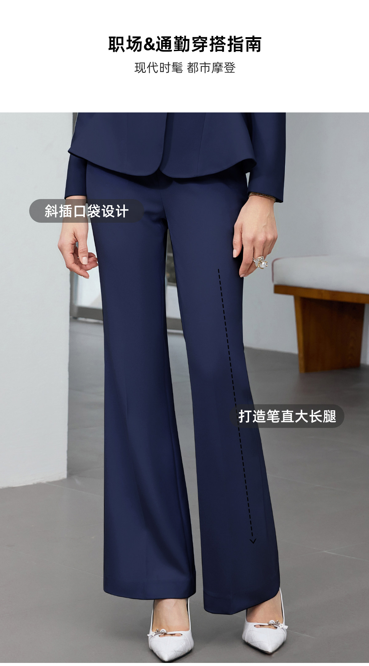 IWY/商务风藏青色西装套装女高端职业正装收腰微喇裤通勤工作服25CP916