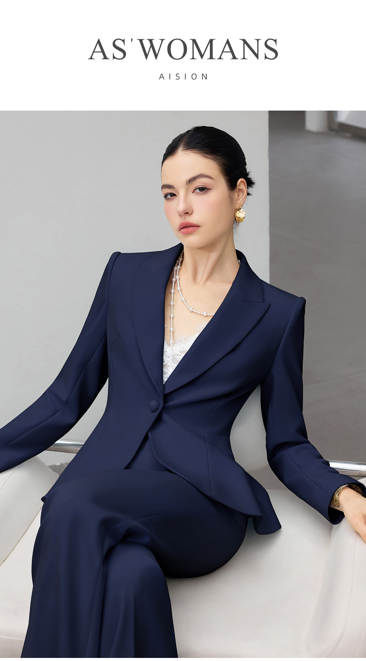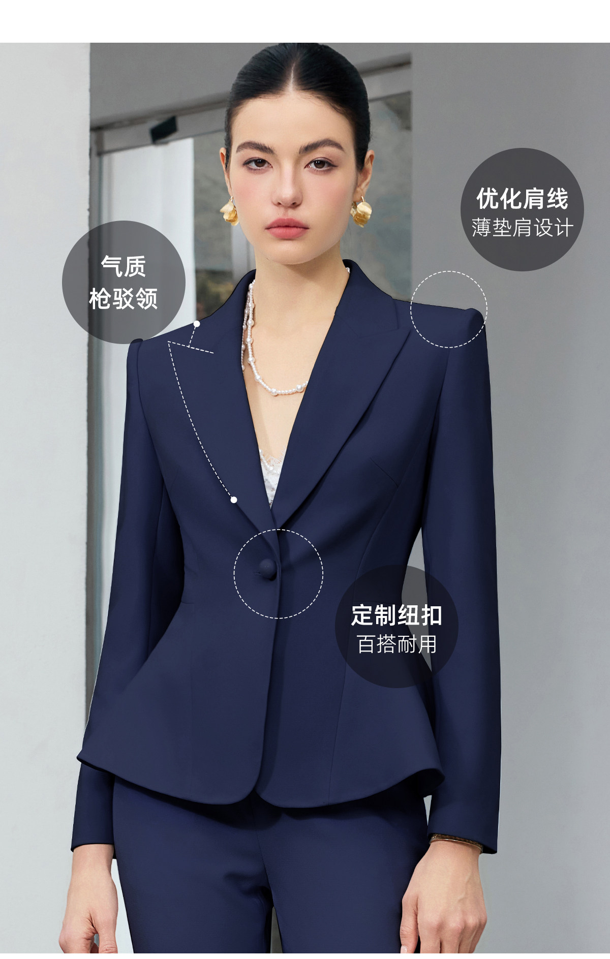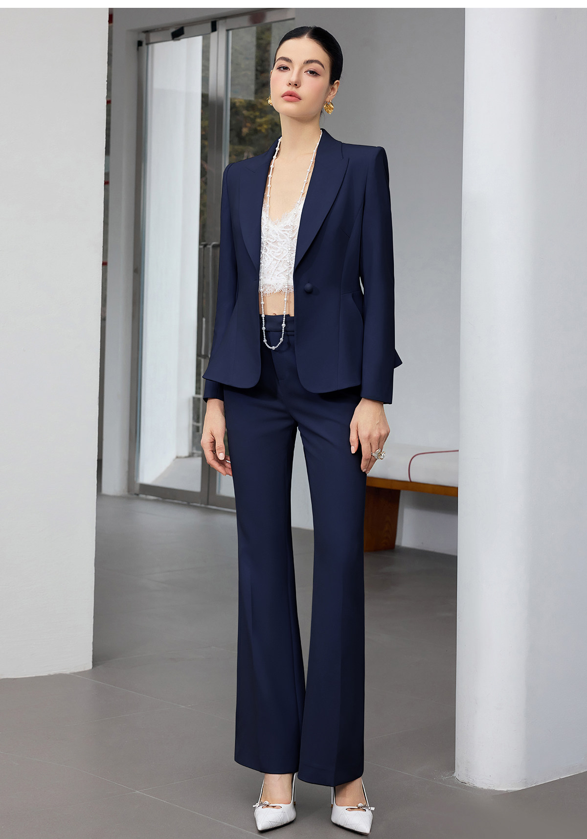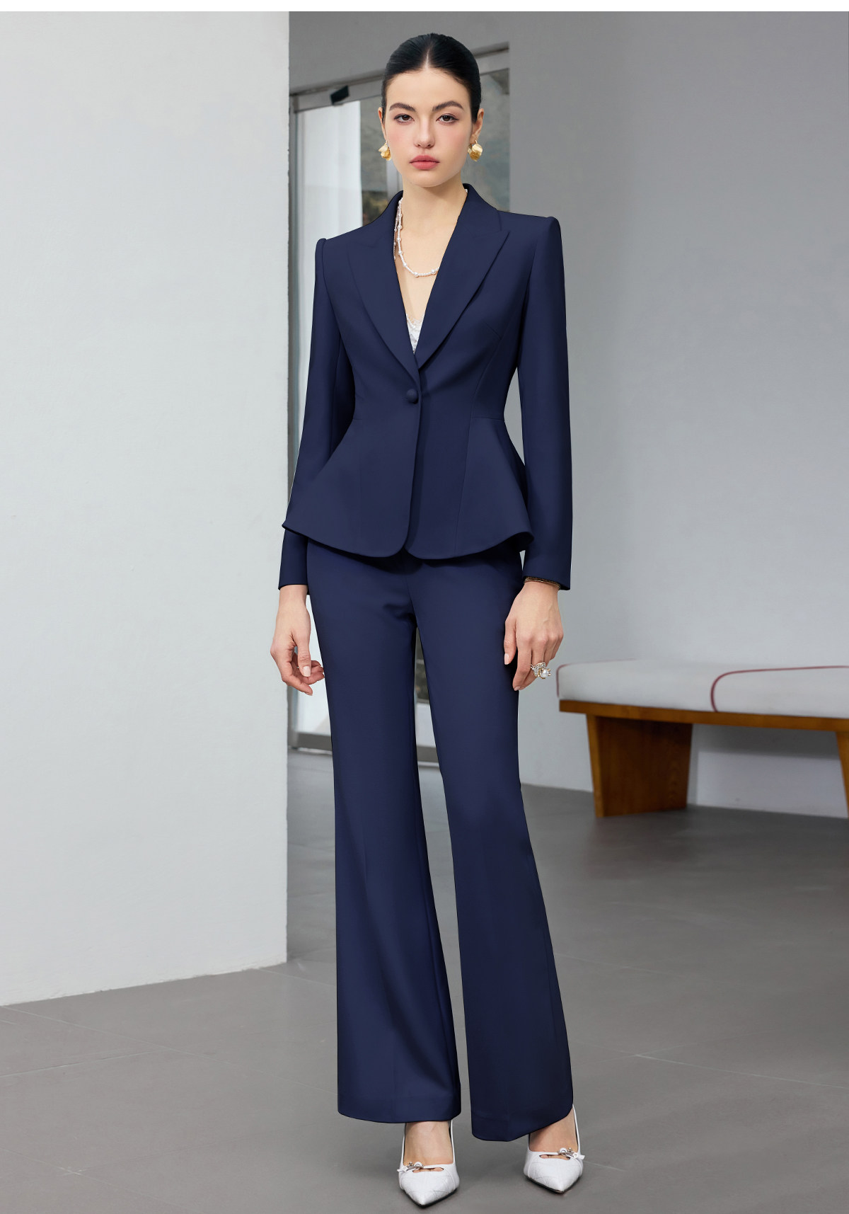 IWY/商务风藏青色西装套装女高端职业正装收腰微喇裤通勤工作服25CP916