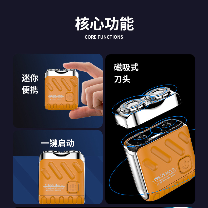 【经典柳钉美学 迷你剃须刀】电动充电款 超干净水洗便携式男士刮胡刀 送男生新年礼物