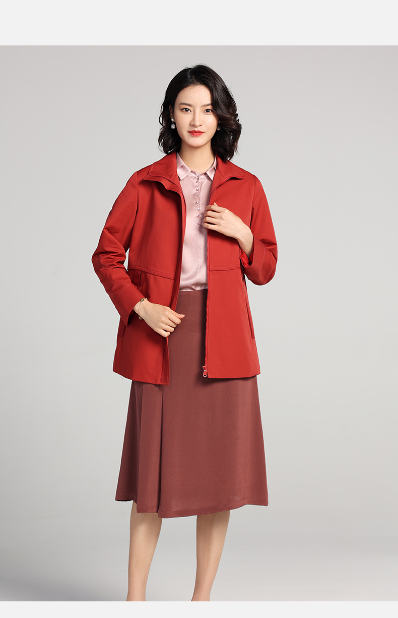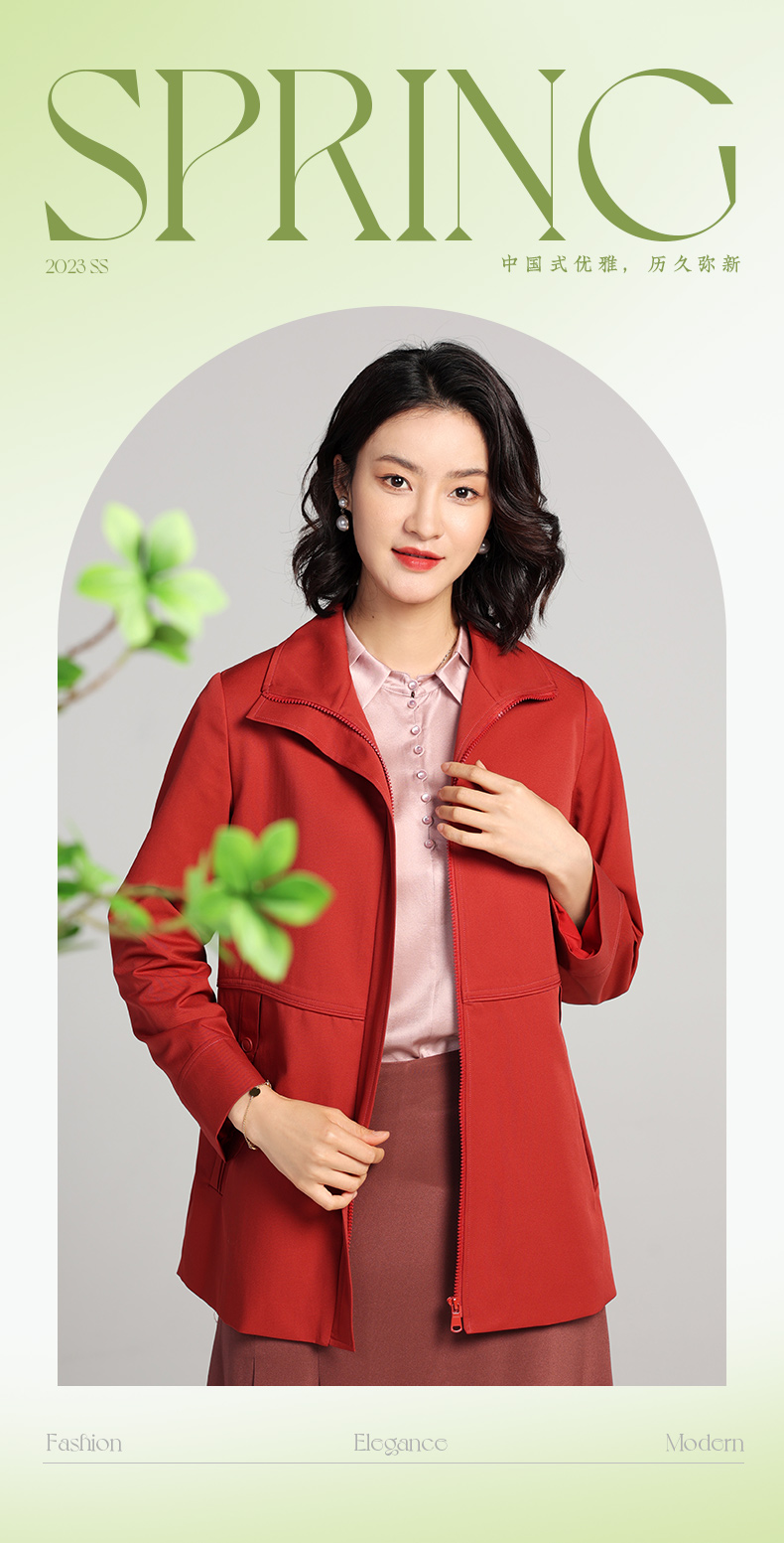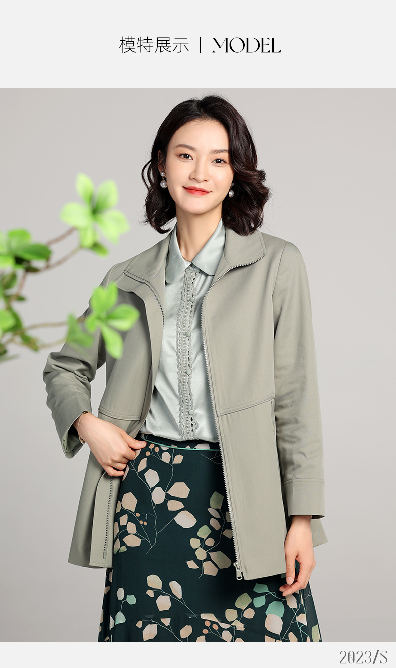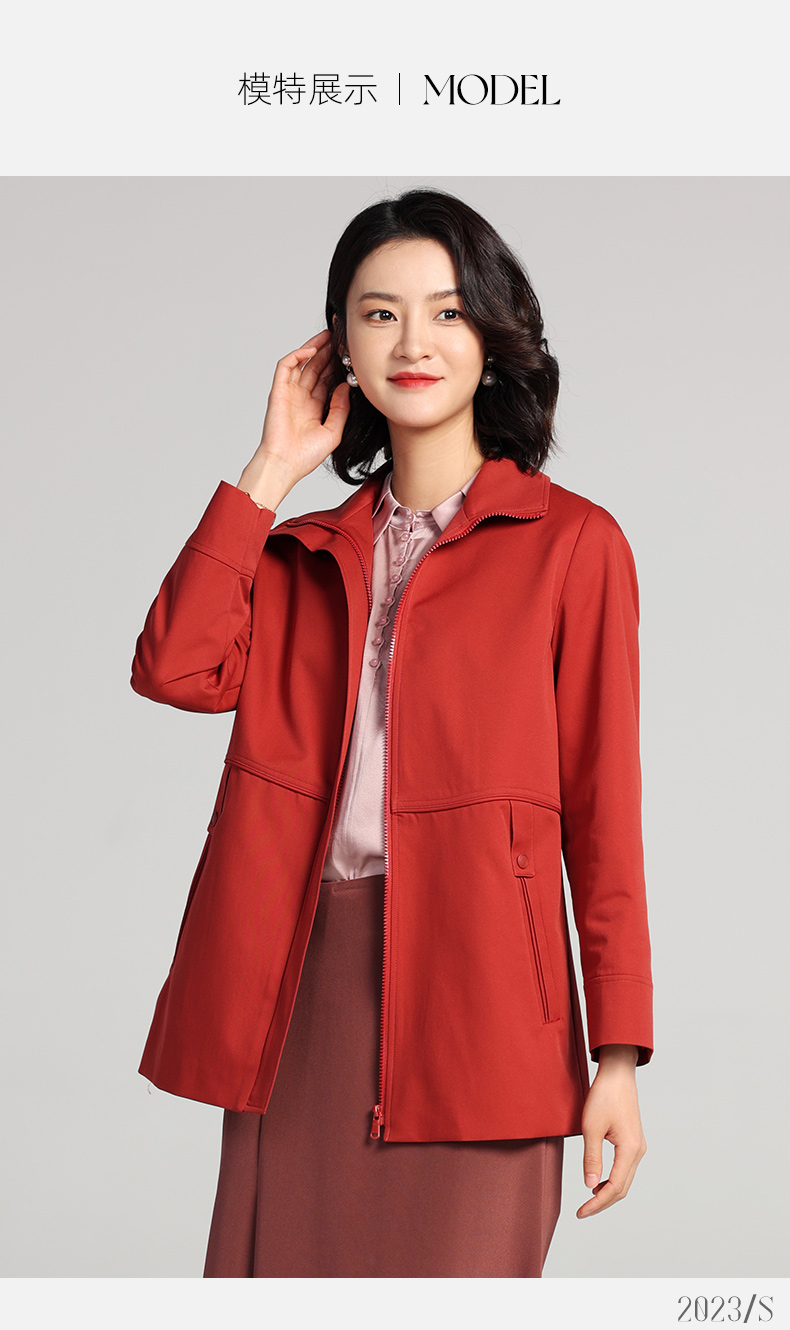 佐尔美2023春季新款 经典简约气质红色绿色短风衣女E23FD09